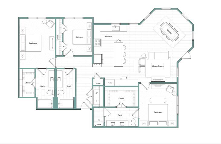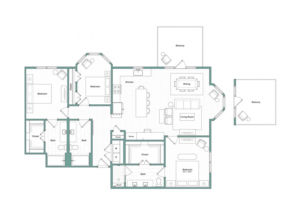 The Beverly offers Studio to 3 Bedroom apartments starting from $1,950 and having 504–1,789 sq ft. Here is the current pricing and availability: