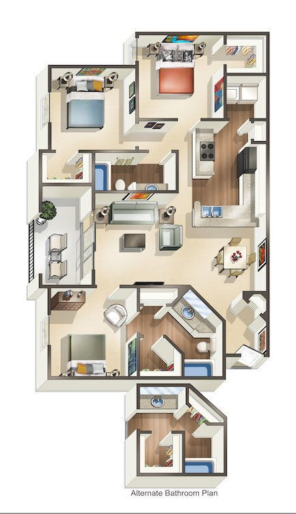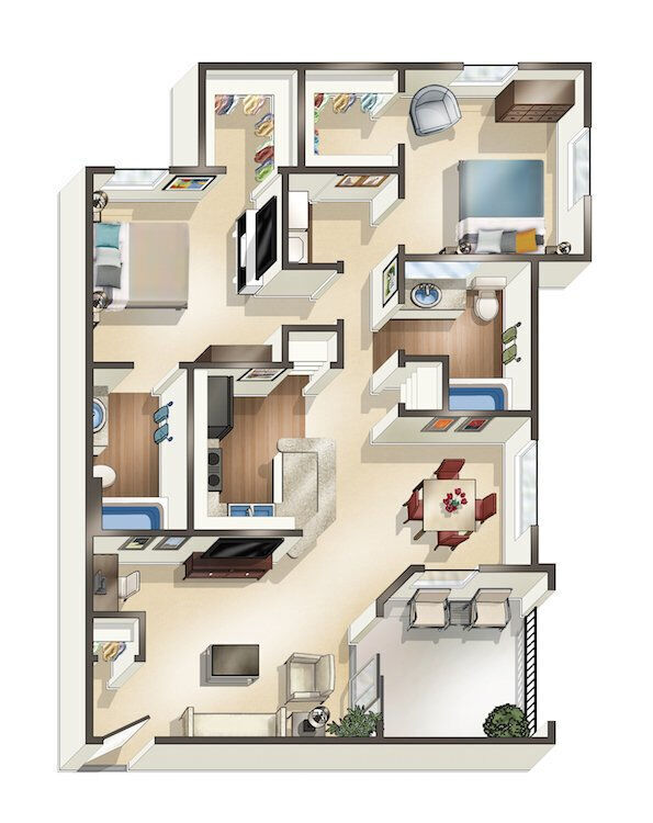 A1C - Floorplan 1 Floor plans are artist's rendering. All dimensions are approximate. Actual product and specifications may vary in dimension or detail. Not all features are available in every rental home. Prices and availability are subject to change. Base rent is based on monthly frequency. Additional fees may apply, such as but not limited to package delivery, trash, water, amenities, etc. Deposits vary. Please see a representative for details.