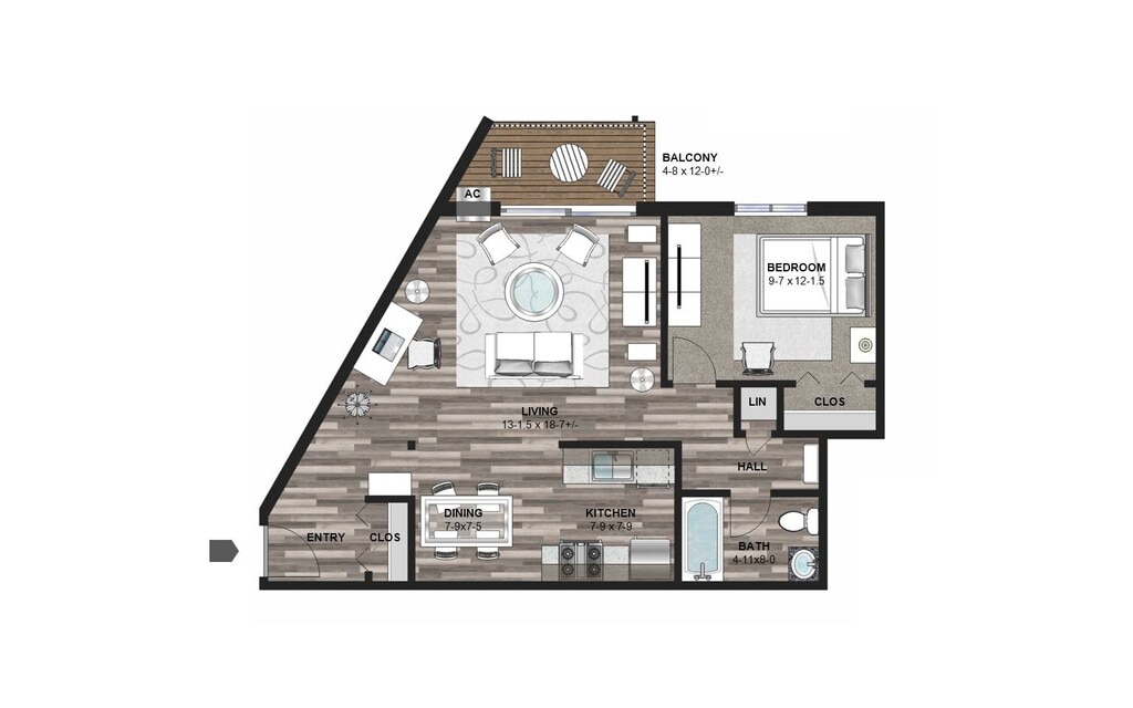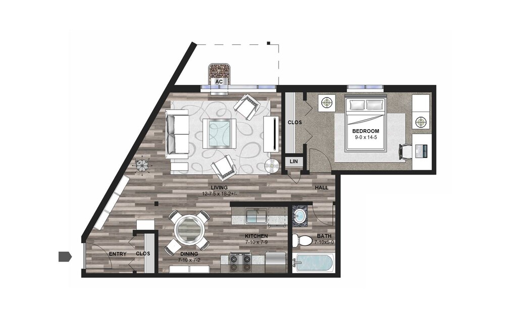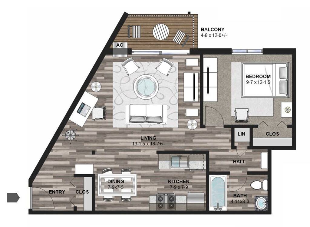 1 Bed, 1 Bath, 618 sq ftTotal Monthly PriceAvailable NowModel Gallery