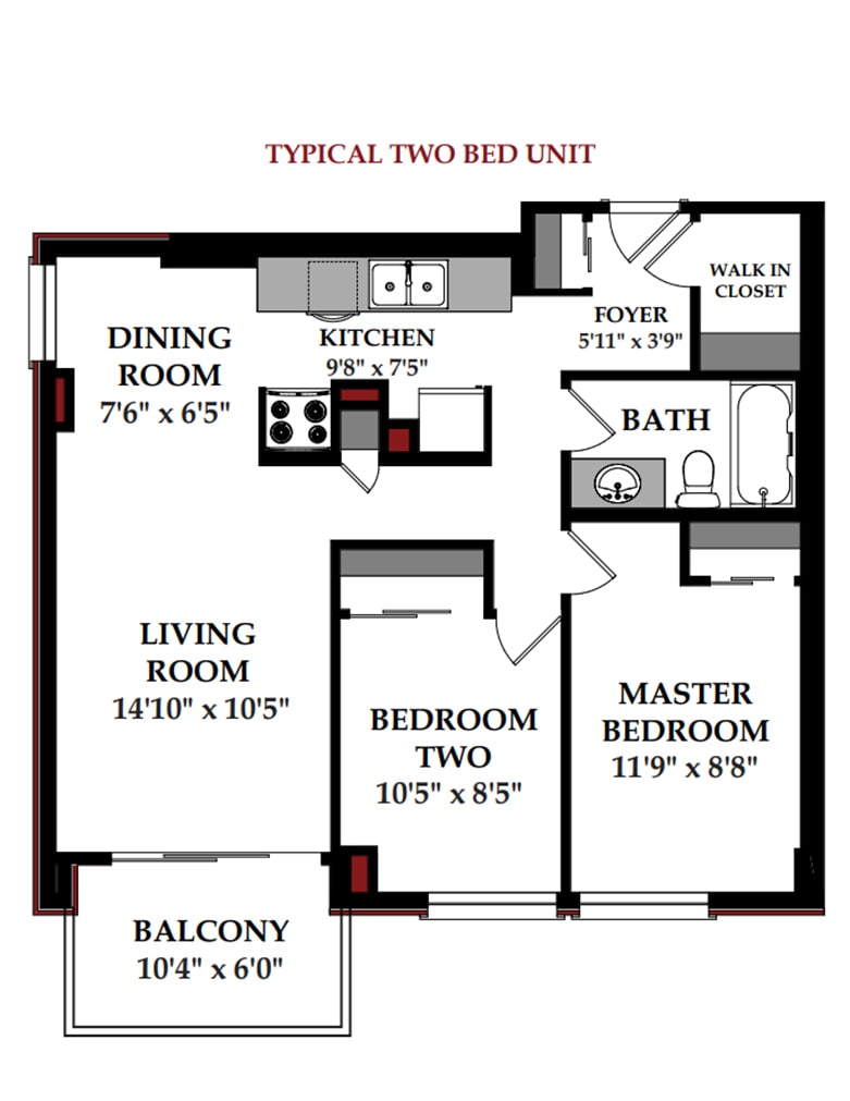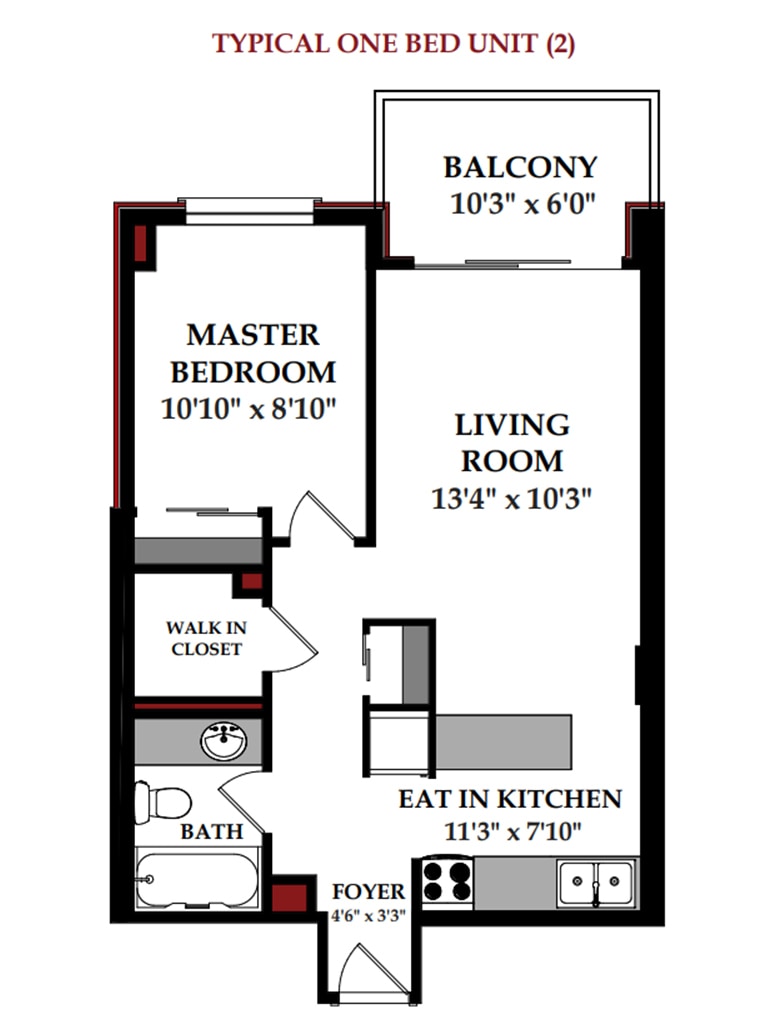 1 Bedroom - Floorplan 2 2 Bedrooms