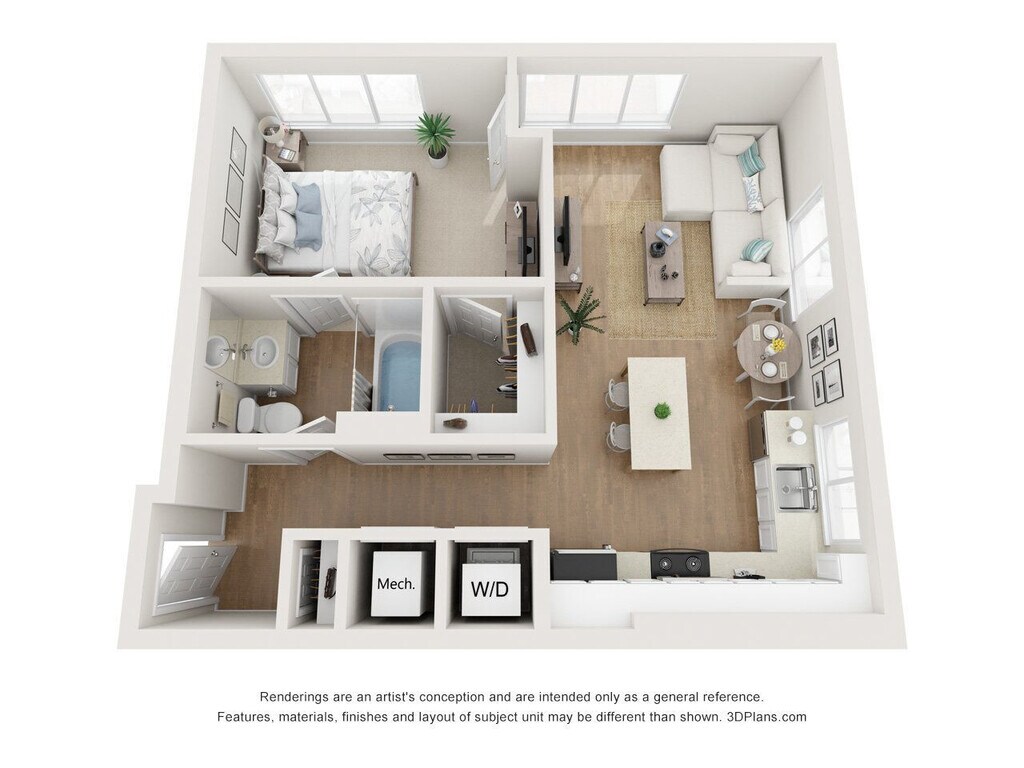 1 Bed, 1 Bath, 599 sq ftModel Gallery