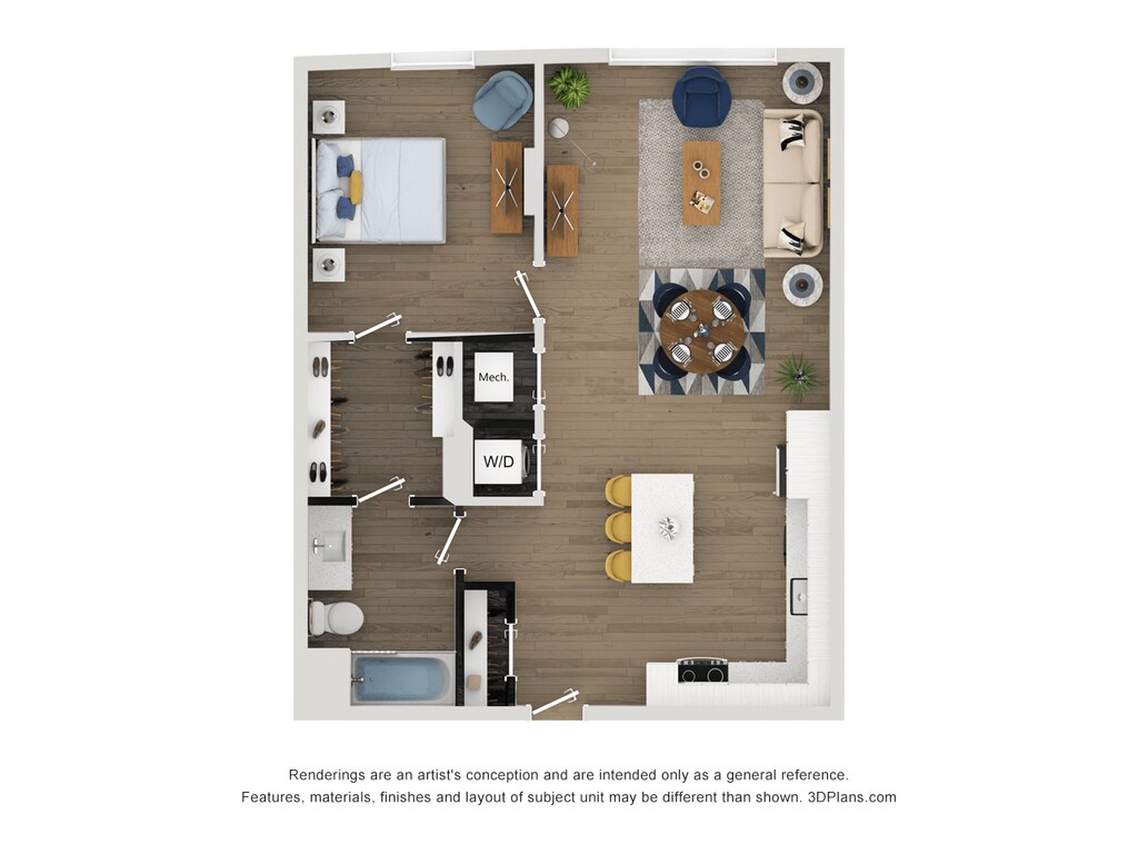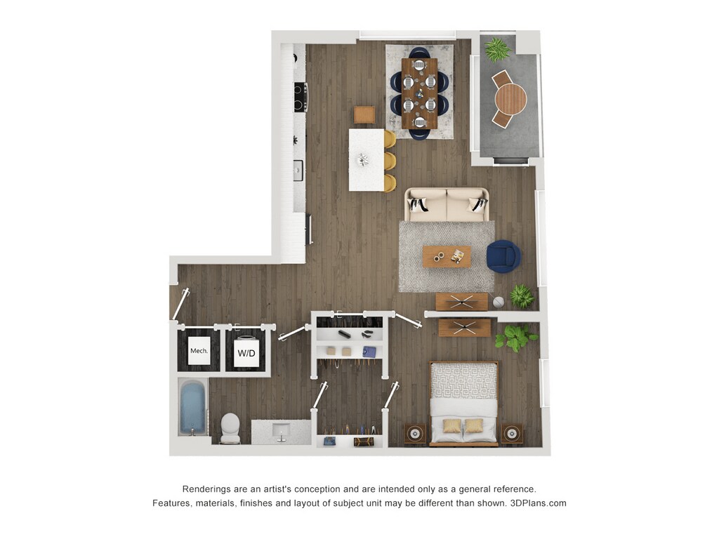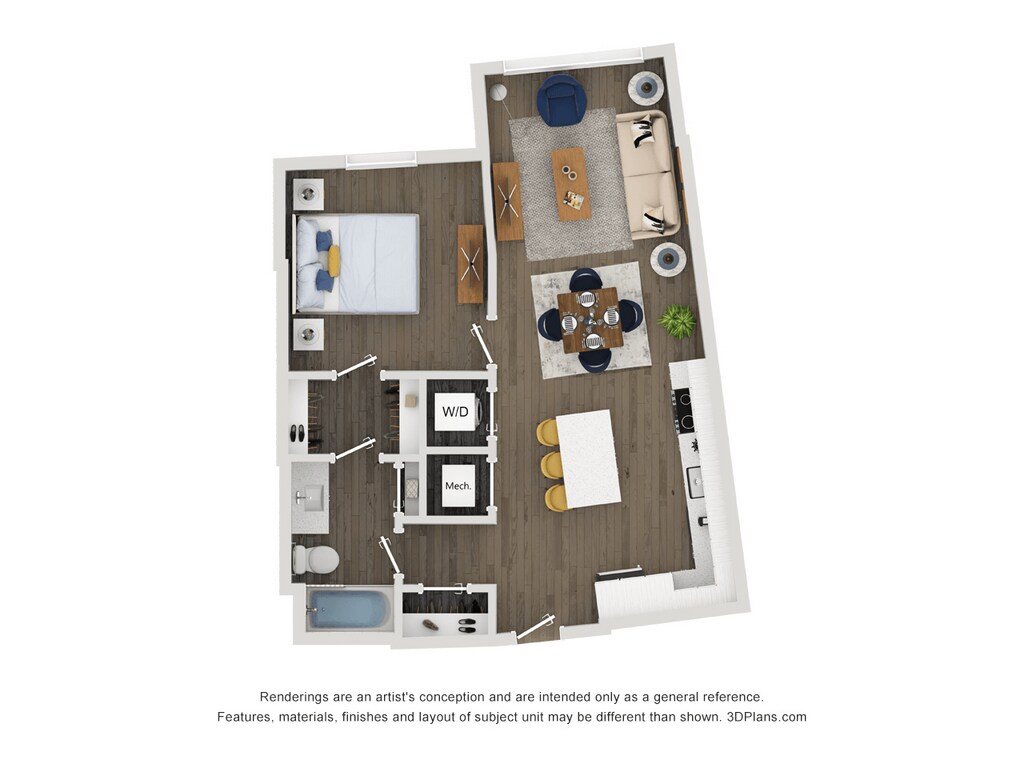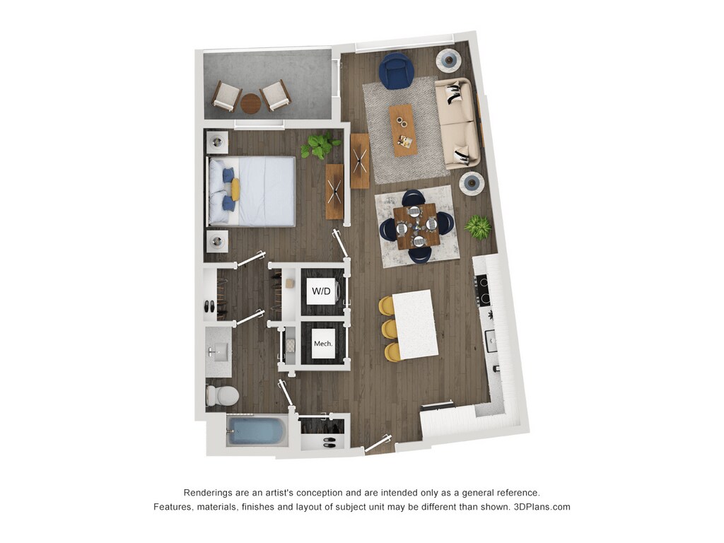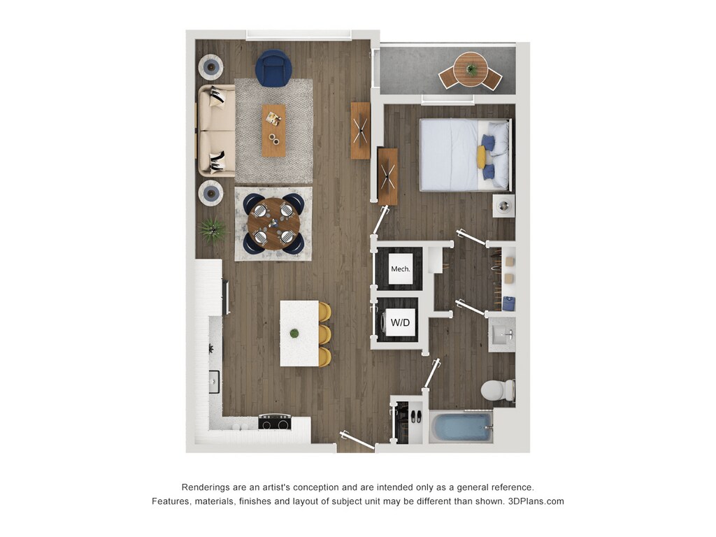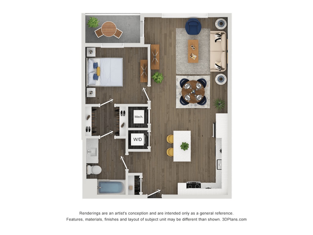 Apartment Model: A14From $2,1201 Bedroom, 1 Bath, 653 sq ftAvailable April 6, 2026Floor plans are artist's rendering. All dimensions are approximate. Actual product and specifications may vary in dimension or detail. Not all features are available in every rental home. Please see a representative for details.
