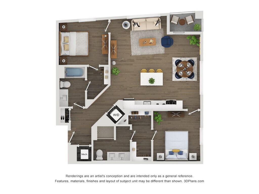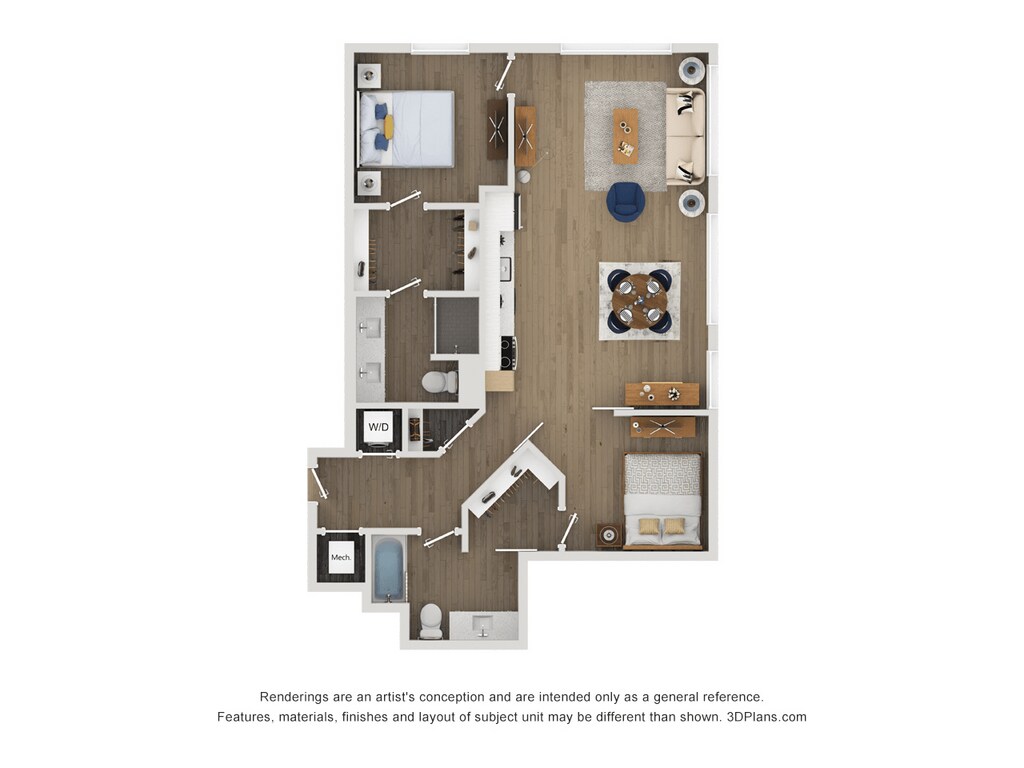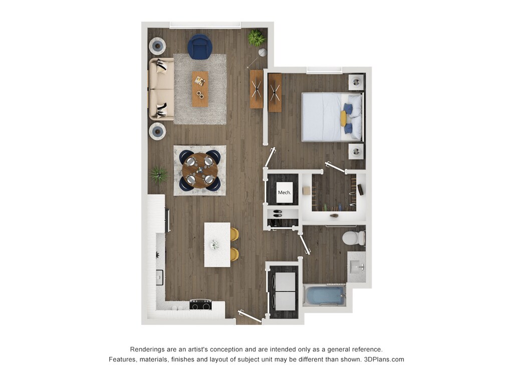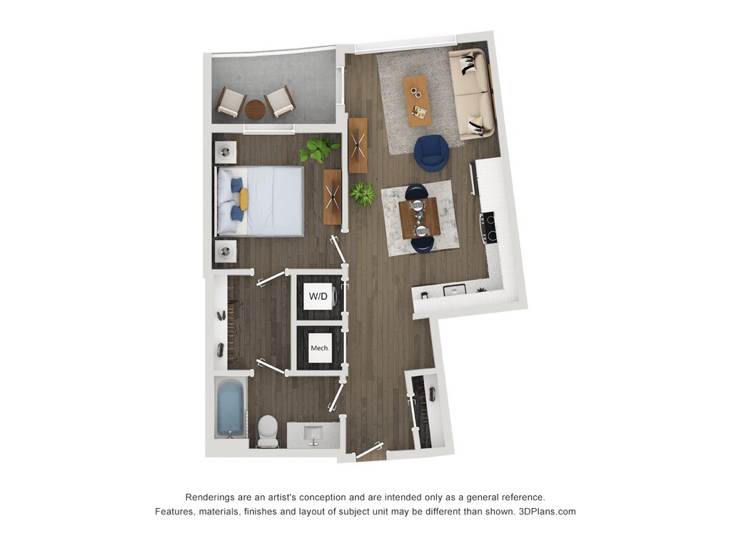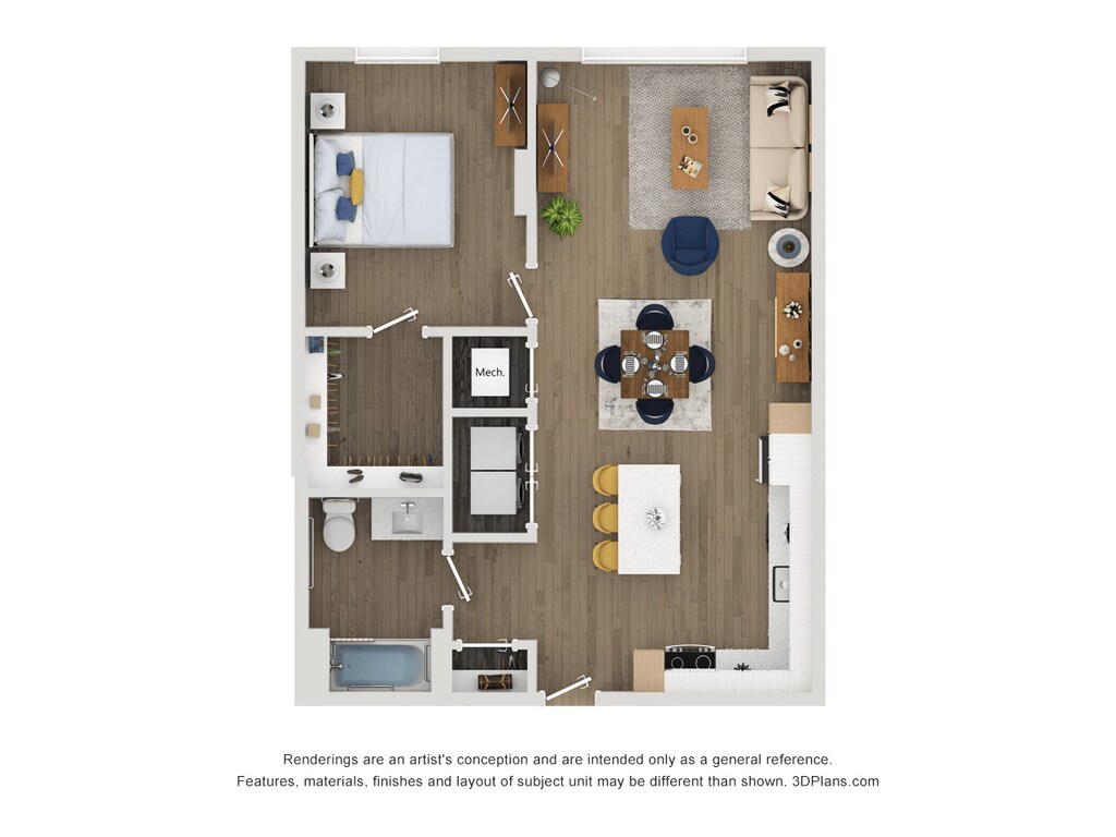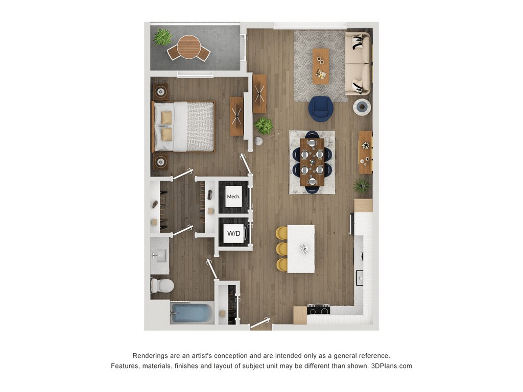 Apartment Model: A14From $2,1201 Bedroom, 1 Bath, 653 sq ftAvailable April 6, 2026Floor plans are artist's rendering. All dimensions are approximate. Actual product and specifications may vary in dimension or detail. Not all features are available in every rental home. Please see a representative for details.
