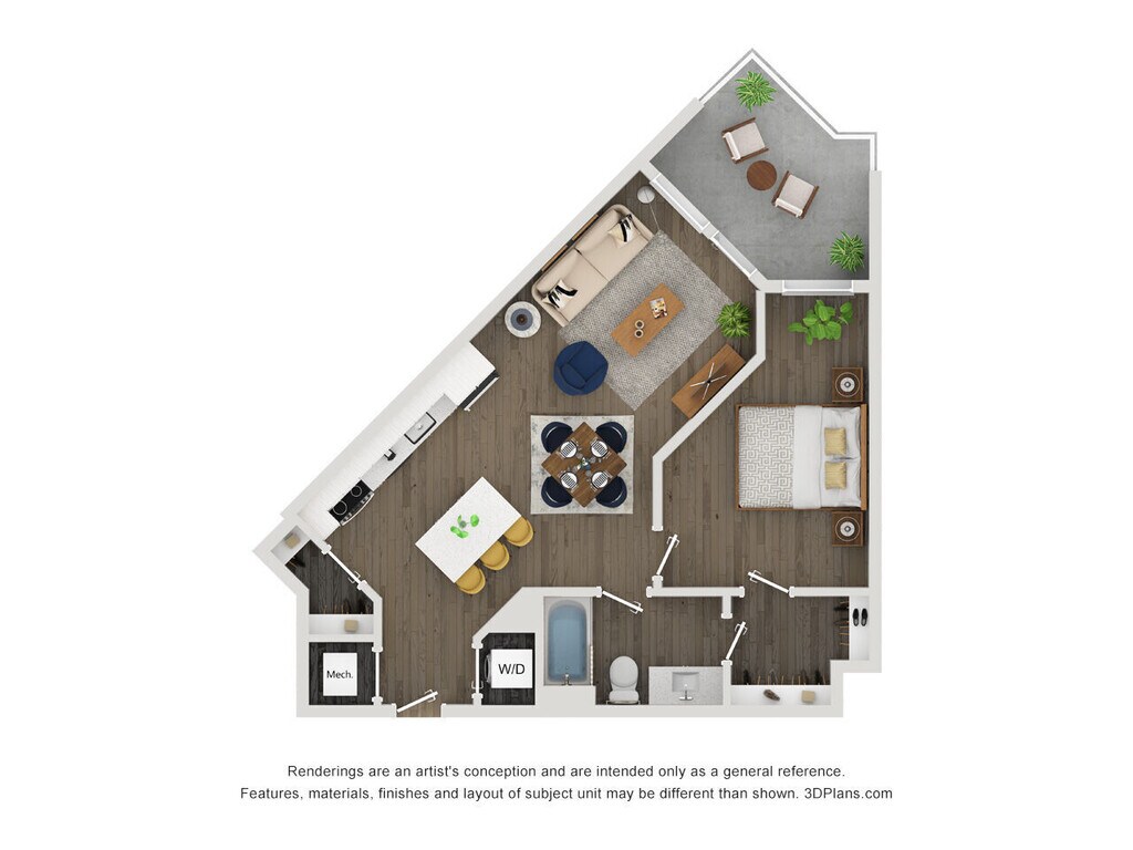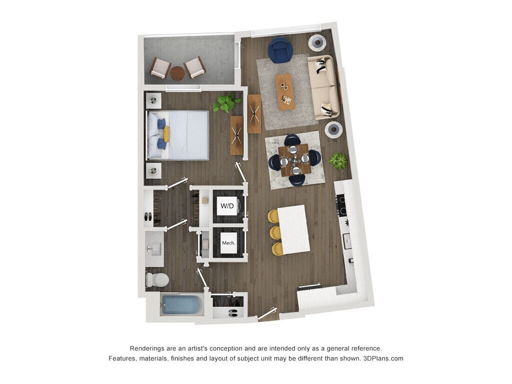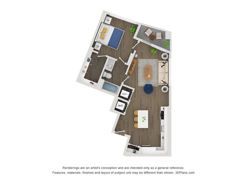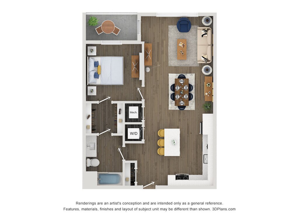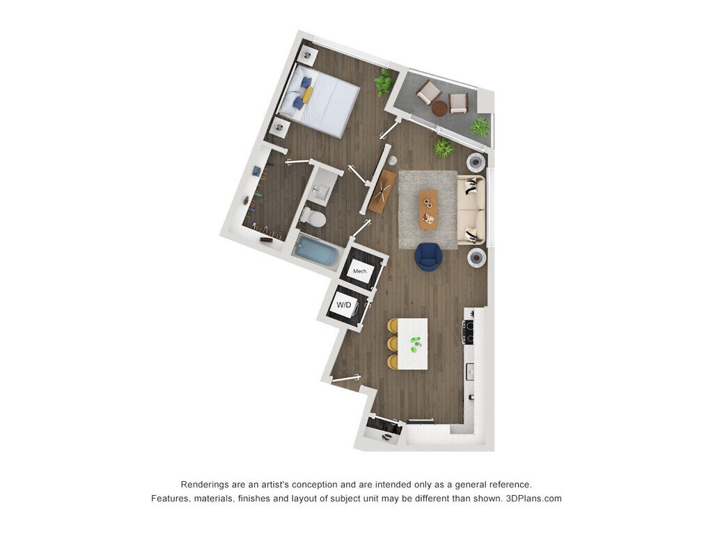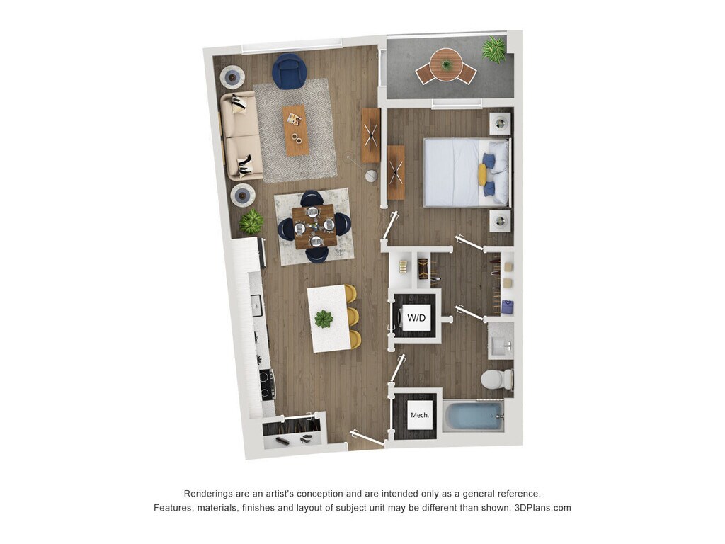 Apartment Model: A12From $2,0371 Bedroom, 1 Bath, 636 sq ftAvailable NowFloor plans are artist's rendering. All dimensions are approximate. Actual product and specifications may vary in dimension or detail. Not all features are available in every rental home. Prices and availability are subject to change. Base rent is based on monthly frequency. Additional fees may apply, such as but not limited to package delivery, trash, water, amenities, etc. Deposits vary. Please see a representative for details.