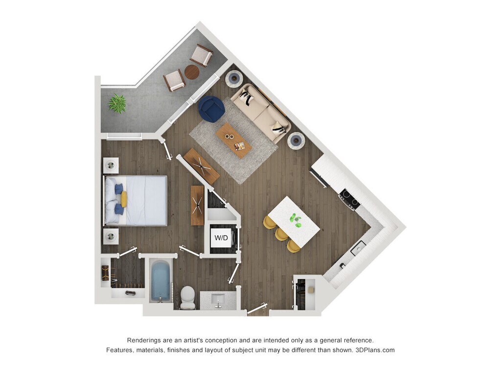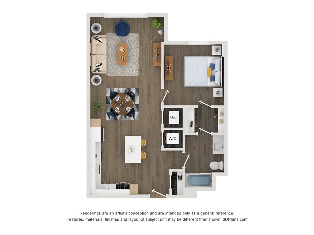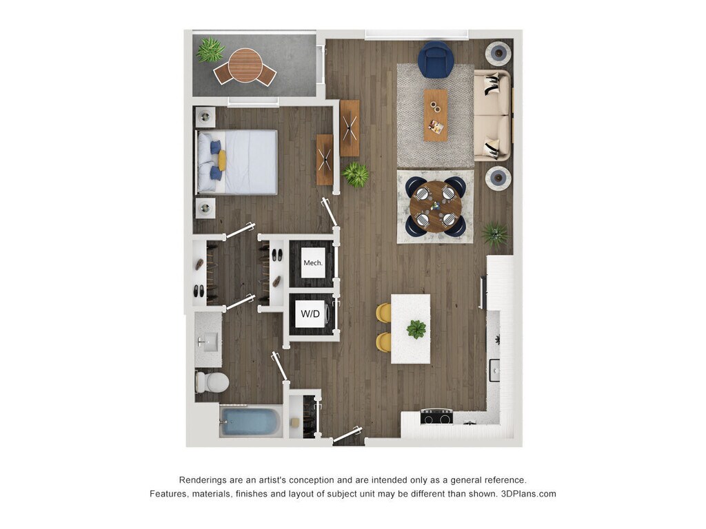 Apartment Model: A16$2,0301 Bedroom, 1 Bath, 665 sq ftAvailable NowFloor plans are artist's rendering. All dimensions are approximate. Actual product and specifications may vary in dimension or detail. Not all features are available in every rental home. Prices and availability are subject to change. Base rent is based on monthly frequency. Additional fees may apply, such as but not limited to package delivery, trash, water, amenities, etc. Deposits vary. Please see a representative for details.