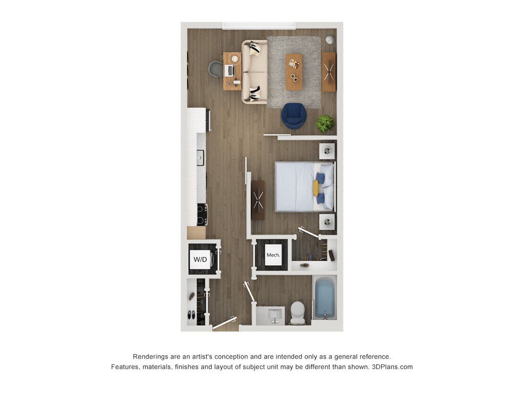 Studio, 1 Bath, 519 sq ftAvailable NowModel Gallery