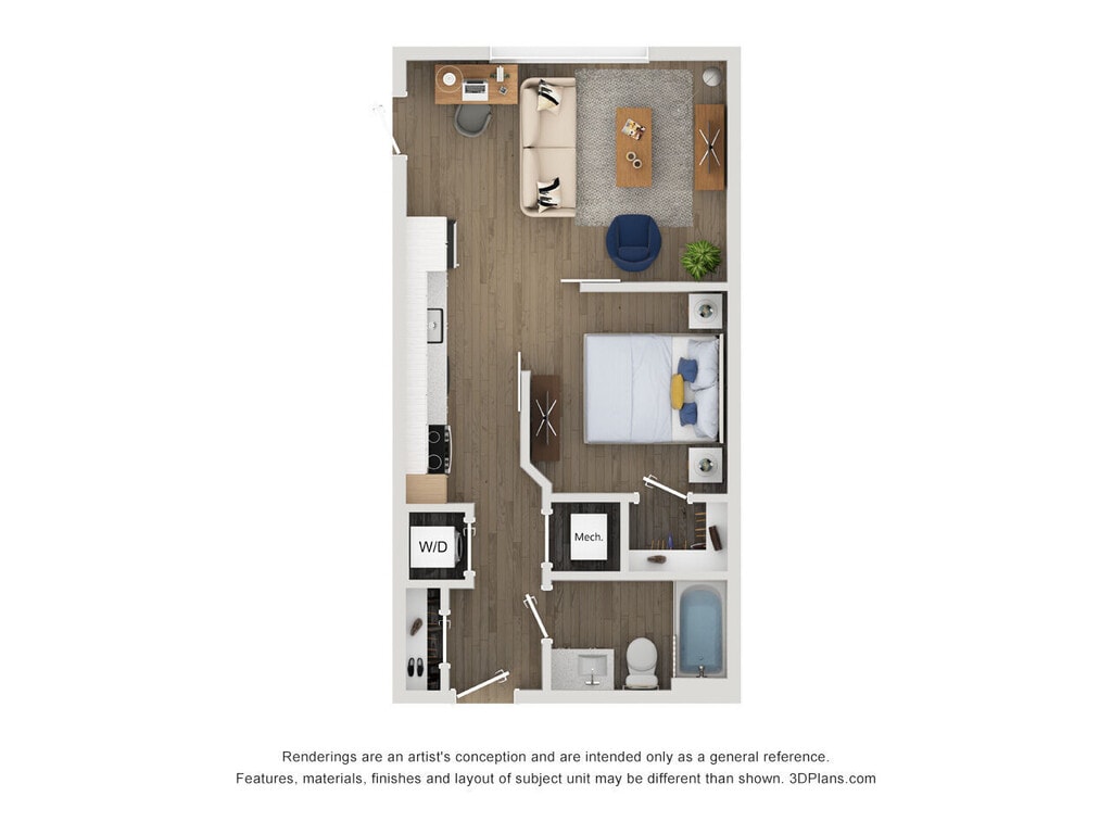 Apartment Model: S1From $1,825Studio, 1 Bath, 519 sq ftAvailable NowFloor plans are artist's rendering. All dimensions are approximate. Actual product and specifications may vary in dimension or detail. Not all features are available in every rental home. Prices and availability are subject to change. Base rent is based on monthly frequency. Additional fees may apply, such as but not limited to package delivery, trash, water, amenities, etc. Deposits vary. Please see a representative for details.