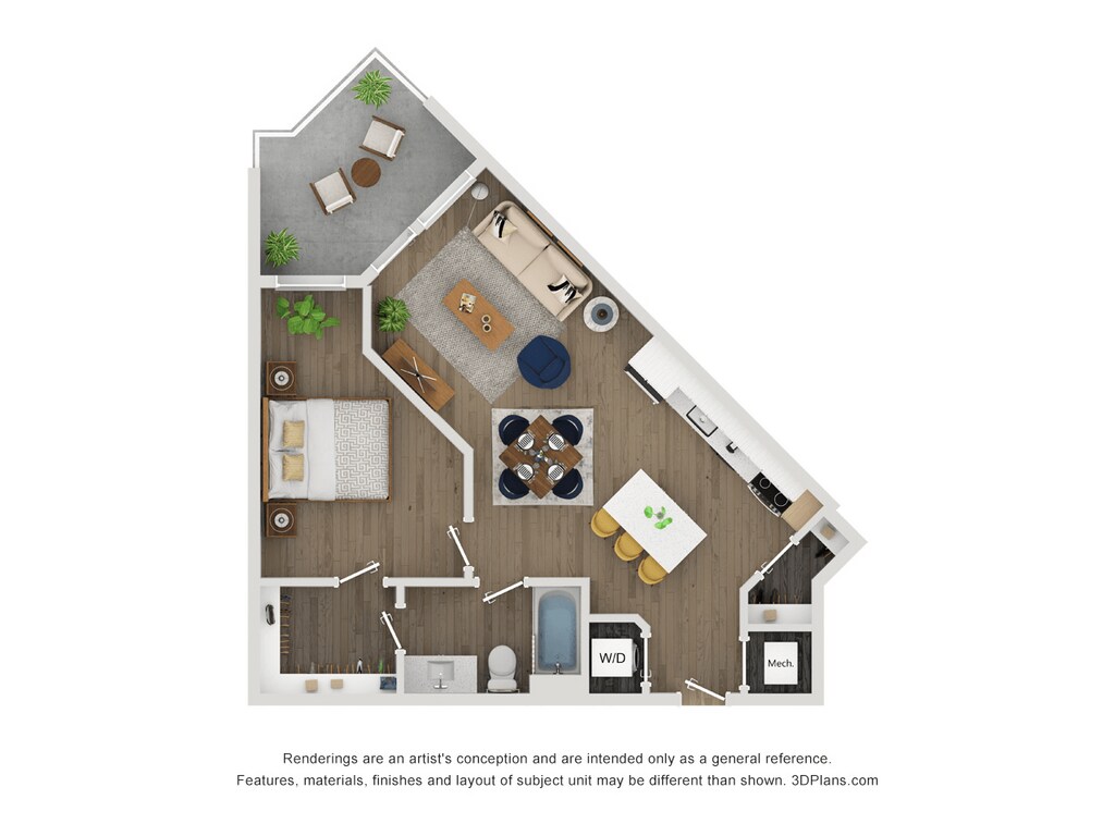 Apartment Model: A5From $2,2051 Bedroom, 1 Bath, 744 sq ftAvailable NowFloor plans are artist's rendering. All dimensions are approximate. Actual product and specifications may vary in dimension or detail. Not all features are available in every rental home. Please see a representative for details.