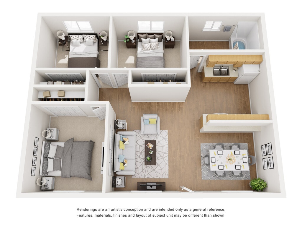 3 Beds, 1 Bath, 850 sq ftAvailable NowModel Gallery