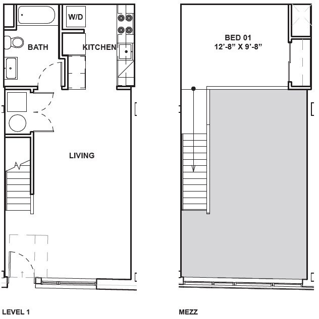 1 Bed, 1 Bath, 577 sq ftModel Gallery