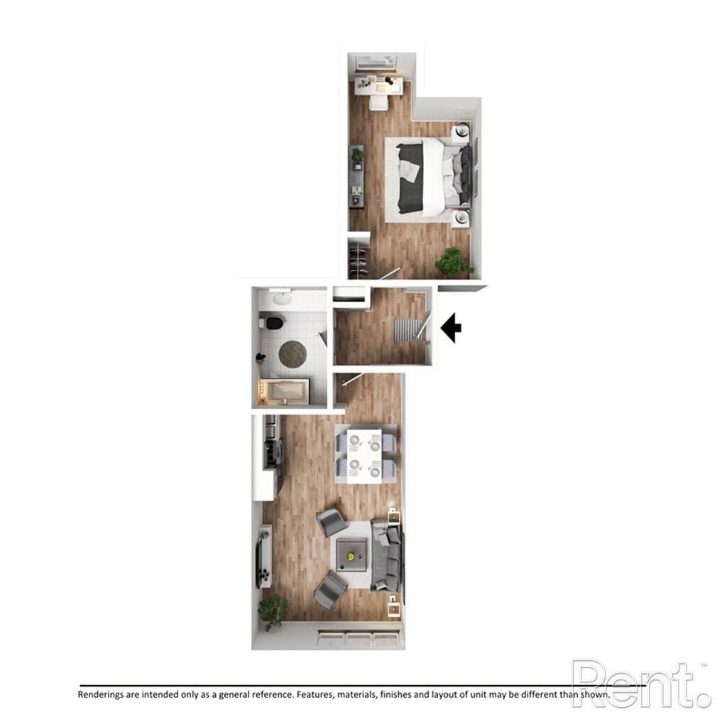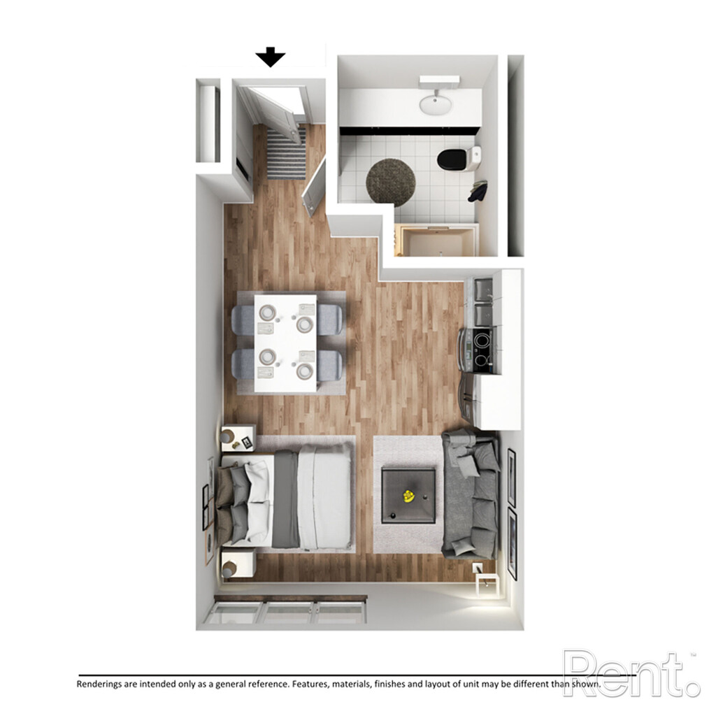 N ADA Studio - Floorplan 1 Apartment Unit: 114Apartment Model: N ADA Studio$925Studio, 1 Bath, 465 sq ftAvailable NowStudio (Large)
