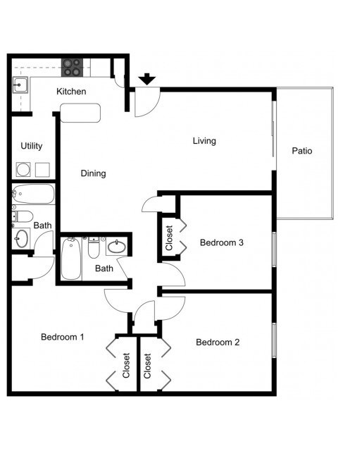 3 Beds, 2 Baths, 1147 sq ftAvailable January 9, 2026Model Gallery