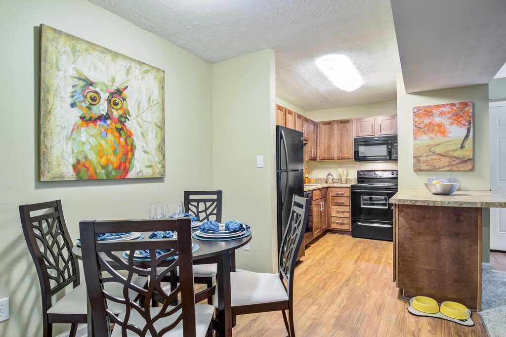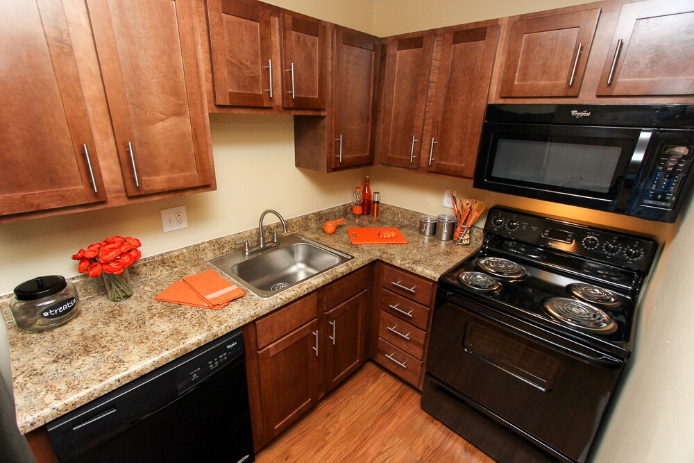 Introducing The Bluffs at Epps Bridge. With substantially renovated interiors, The Bluffs at Epps Bridge offers affordable luxury in West Athens. Featuring all-wood maple cabinets and stylish black appliances, our open kitchens give a luxurious feel. Our carefully chosen brushed nickel plumbing and light fixtures complement the brushed nickel cabinet pulls for a modern look. Each of our bathrooms feature new all-wood maple cabinetry, custom bath tubs with easy to clean surrounds, and even new toilets. Custom two-toned paint highlights the brand new wood-look flooring for a designer look throughout each apartment home.