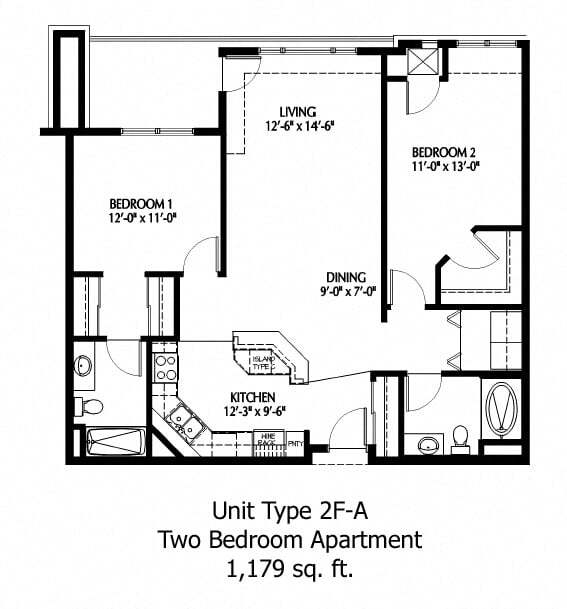 Apartment Model: Two Bedroom F-AFrom $2,1682 Bedroom, 2 Bath, 1179 sq ftAvailable Now![]() - Two Bedroom F-A - Floorplan 1 Apartment Unit: 404Apartment Model: Two Bedroom F-A$2,1682 Bedroom, 2 Bath, 1179 sq ftAvailable Now- Two Bedroom M- From $2,1682 Beds, 2 Baths, 1179 sq ftPlus FeesAvailable Now- Model Gallery- Floorplans- Availability Details- Price - Availability Date - Unit - Sq Ft - $2,168 - Available Now - 684 - 1179 - Model Amenities and Features- Features- Air Conditioning