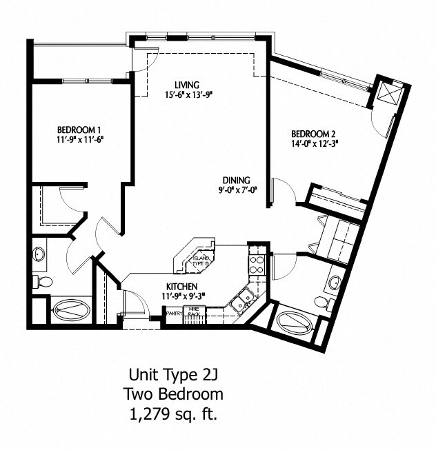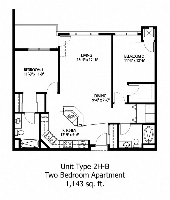 Apartment Model: Two Bedroom DFrom $2,0372 Bedroom, 1 Bath, 1156 sq ftUnavailable![]() - Two Bedroom D - Floorplan 1