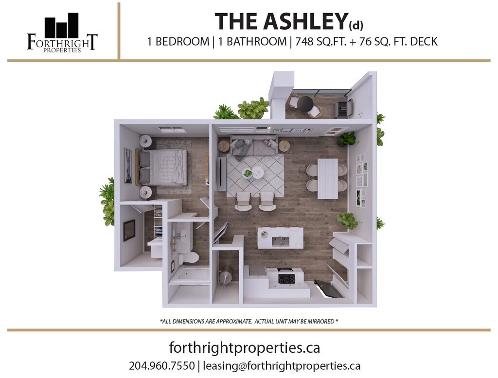 Ashley v. D - Floorplan Ashley v. D - 3D Tour Apartment Unit: 595-512Apartment Model: Ashley v. D$1,5261 Bedroom, 1 Bath, 748 sq ftAvailable May 1, 2026Ashley v. C