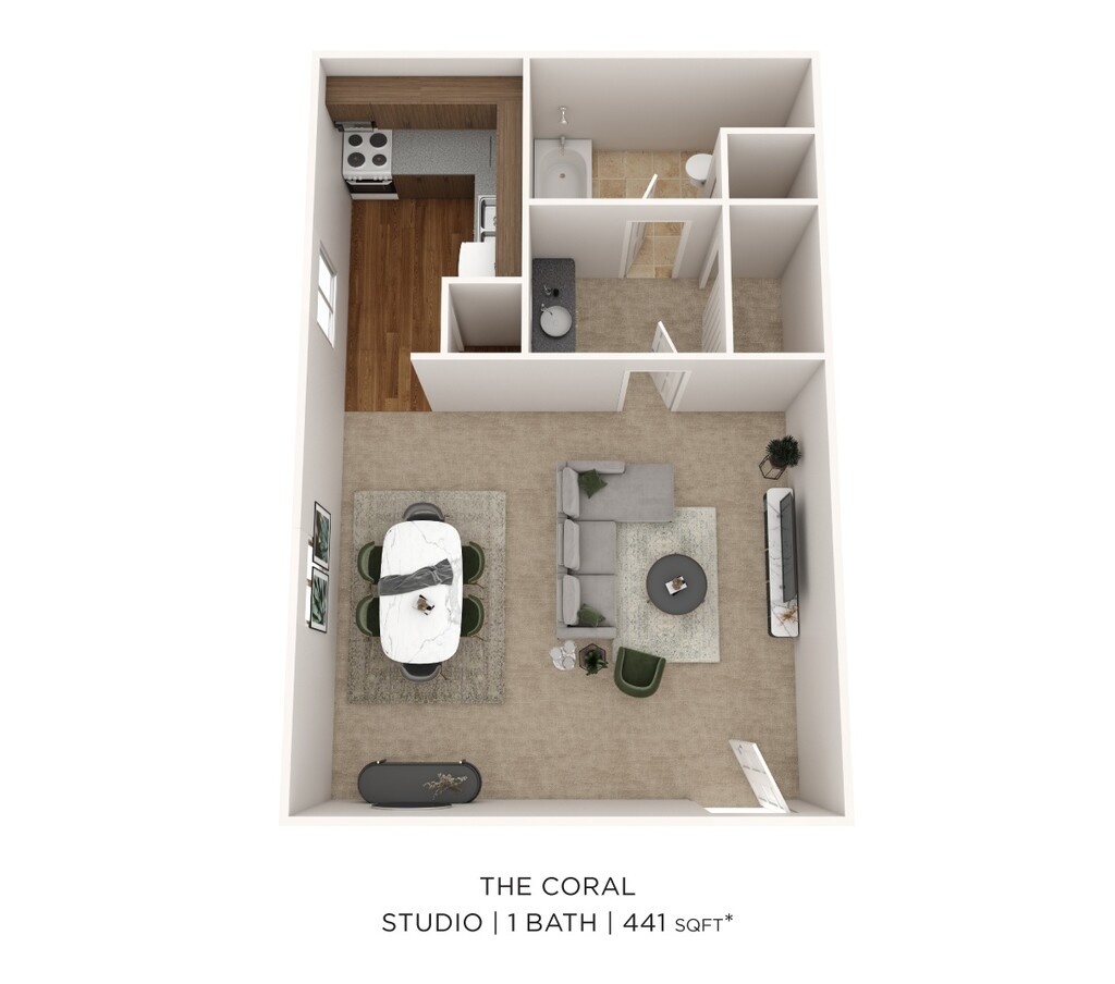 Studio, 1 Bath, 441 sq ftAvailable NowModel Gallery