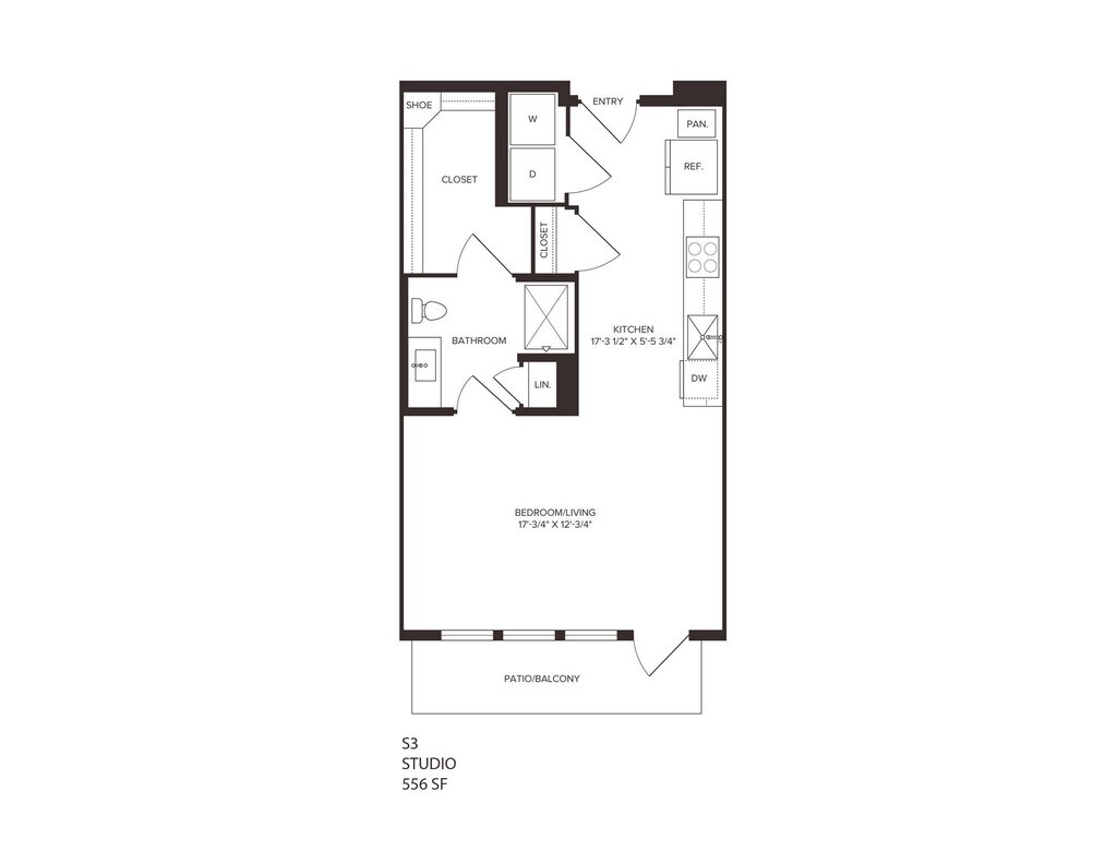 S3 - Floorplan 1 Apartment Unit: 236Apartment Model: S3Studio, 1 Bath, 556 sq ftAvailable NowApartment Unit: 445Apartment Model: S3Studio, 1 Bath, 556 sq ftAvailable January 7, 2026Apartment Unit: 545Apartment Model: S3Studio, 1 Bath, 556 sq ftAvailable January 13, 2026Floorplan S2
