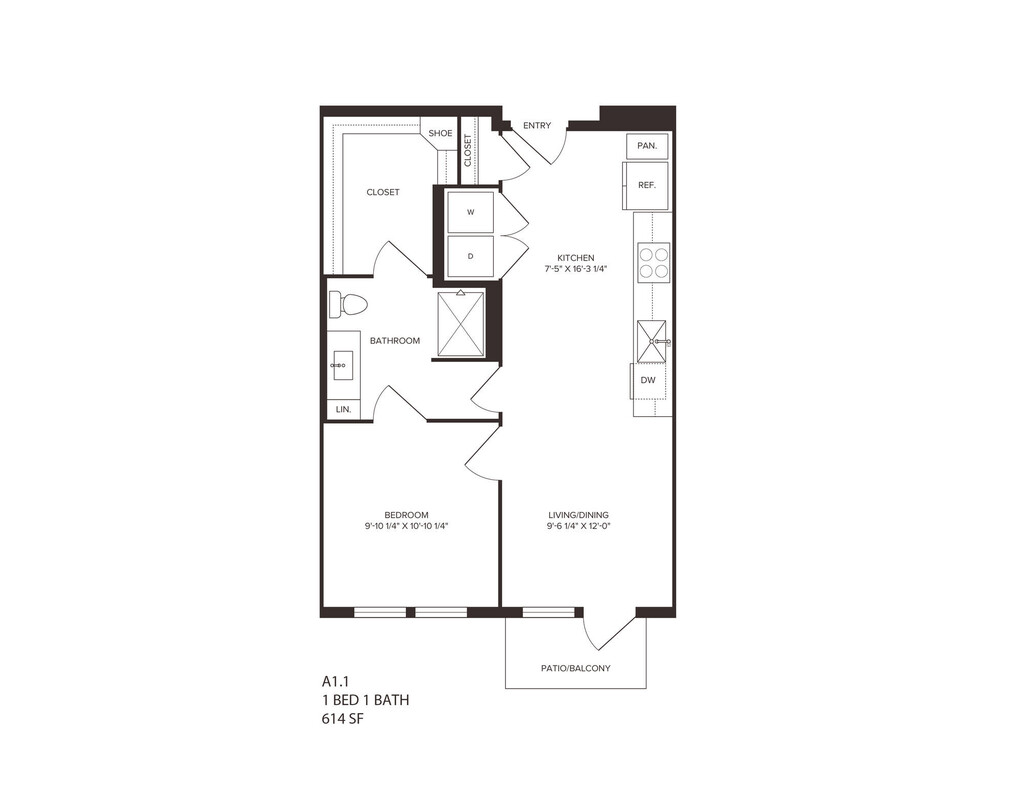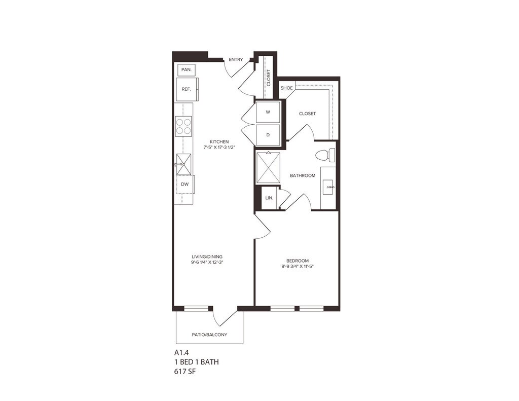 A1.4 - Floorplan 1 Apartment Unit: 565Apartment Model: A1.41 Bedroom, 1 Bath, 617 sq ftAvailable NowFloorplan A2