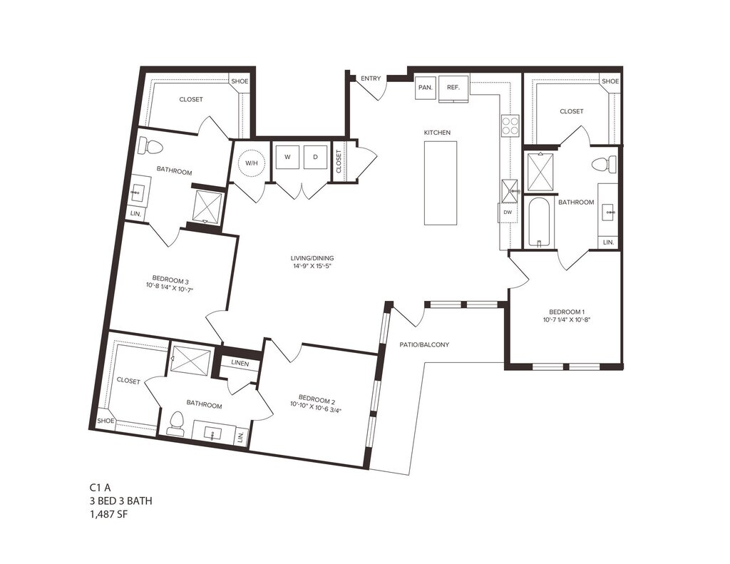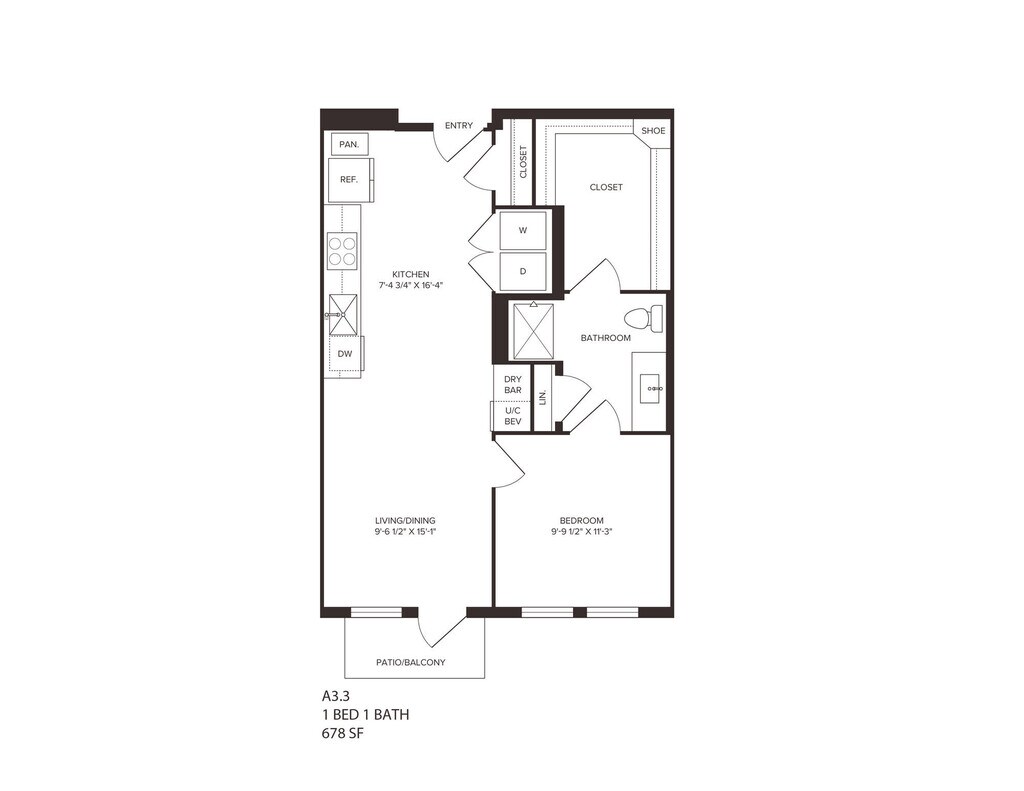 A3.3 - Floorplan 1 Apartment Unit: 613Apartment Model: A3.31 Bedroom, 1 Bath, 678 sq ftAvailable NowA3.2