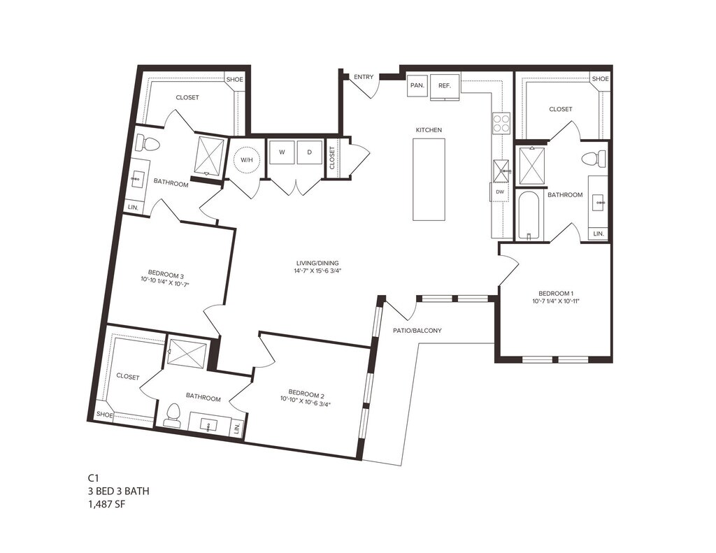 Apartment Model: A3.31 Bedroom, 1 Bath, 678 sq ftAvailable Now![]()