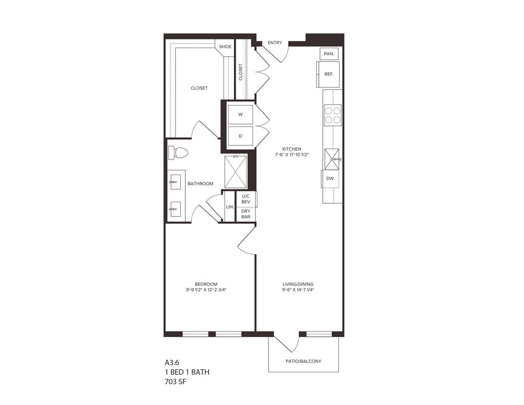 Apartment Model: A3.61 Bedroom, 1 Bath, 703 sq ftAvailable November 29, 2025![]()