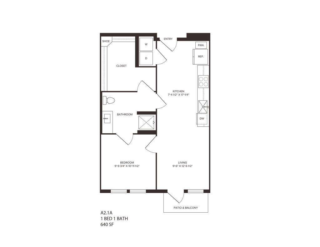 A2.1A - Floorplan 1 Apartment Unit: 335Apartment Model: A2.1A1 Bedroom, 1 Bath, 640 sq ftAvailable NowA1.4