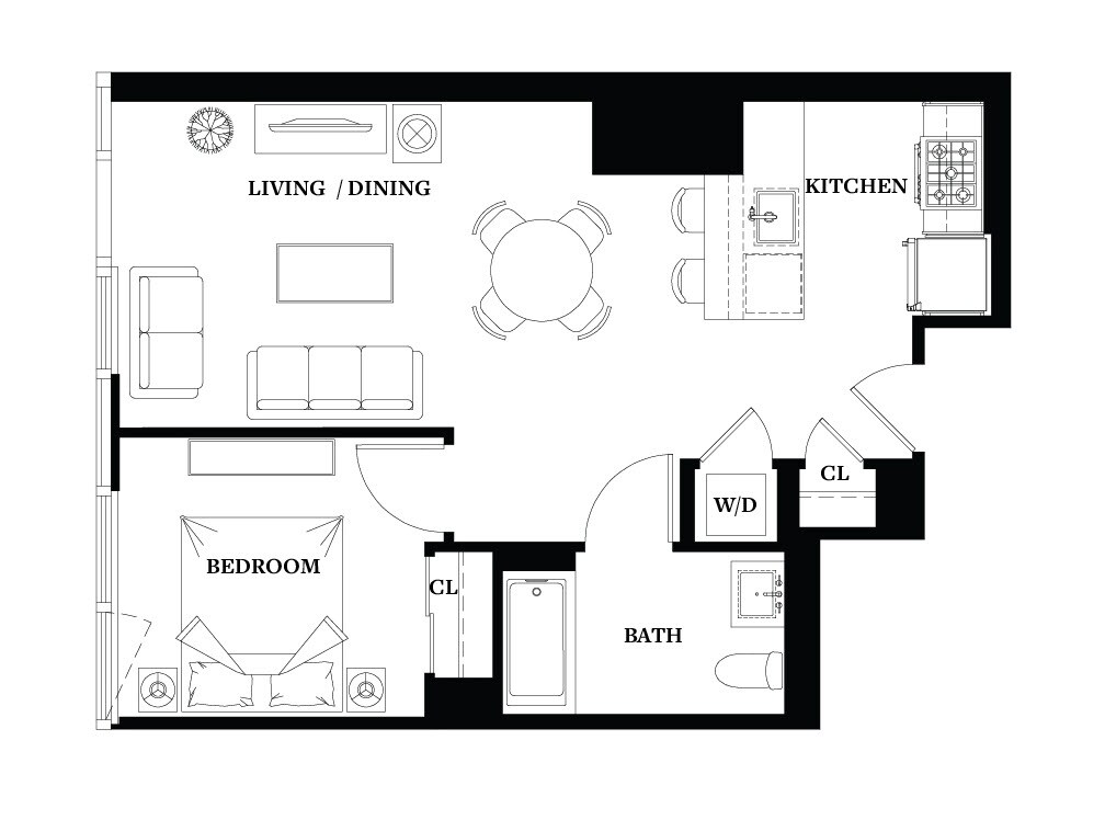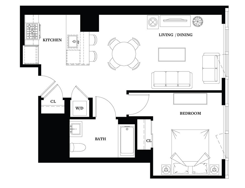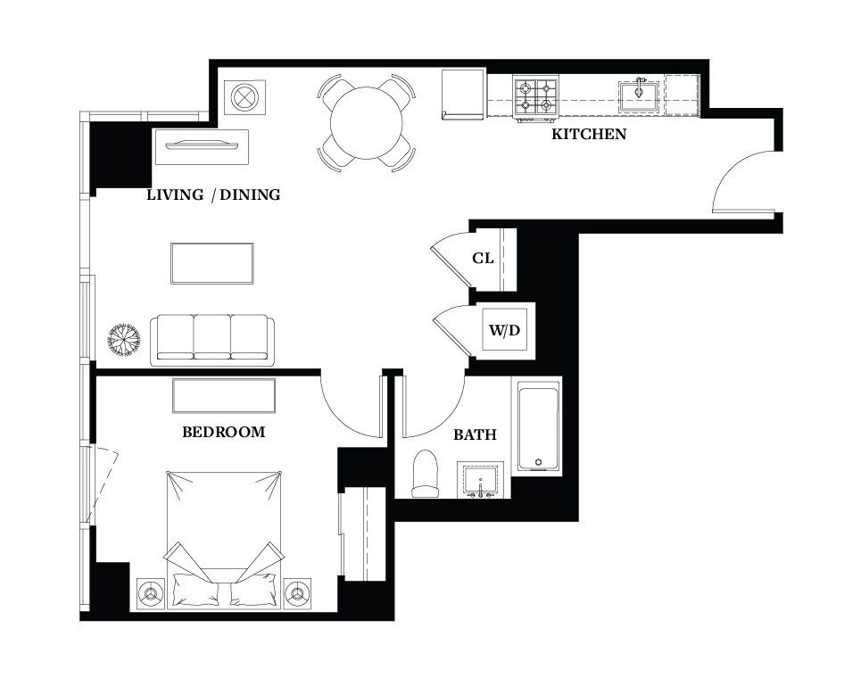 Studio, 1 Bath, 603 sq ftLargest StudioThis is the largest Studio at this PropertyModel Gallery
