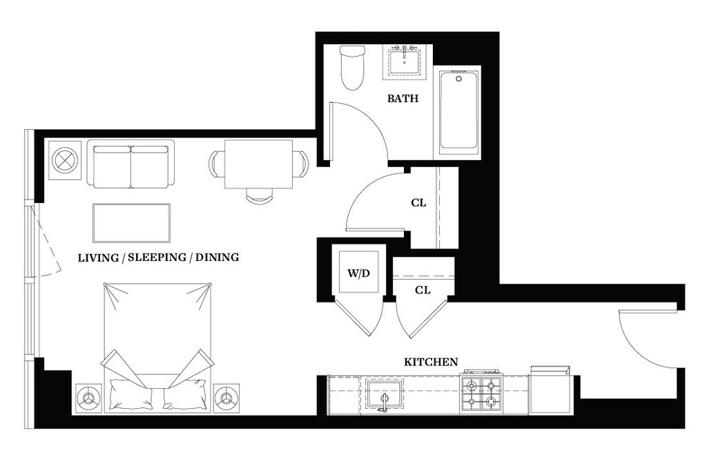 Apartment Model: S02Studio, 1 Bath, 469 sq ftUnavailableFloorplansPhotos![]()