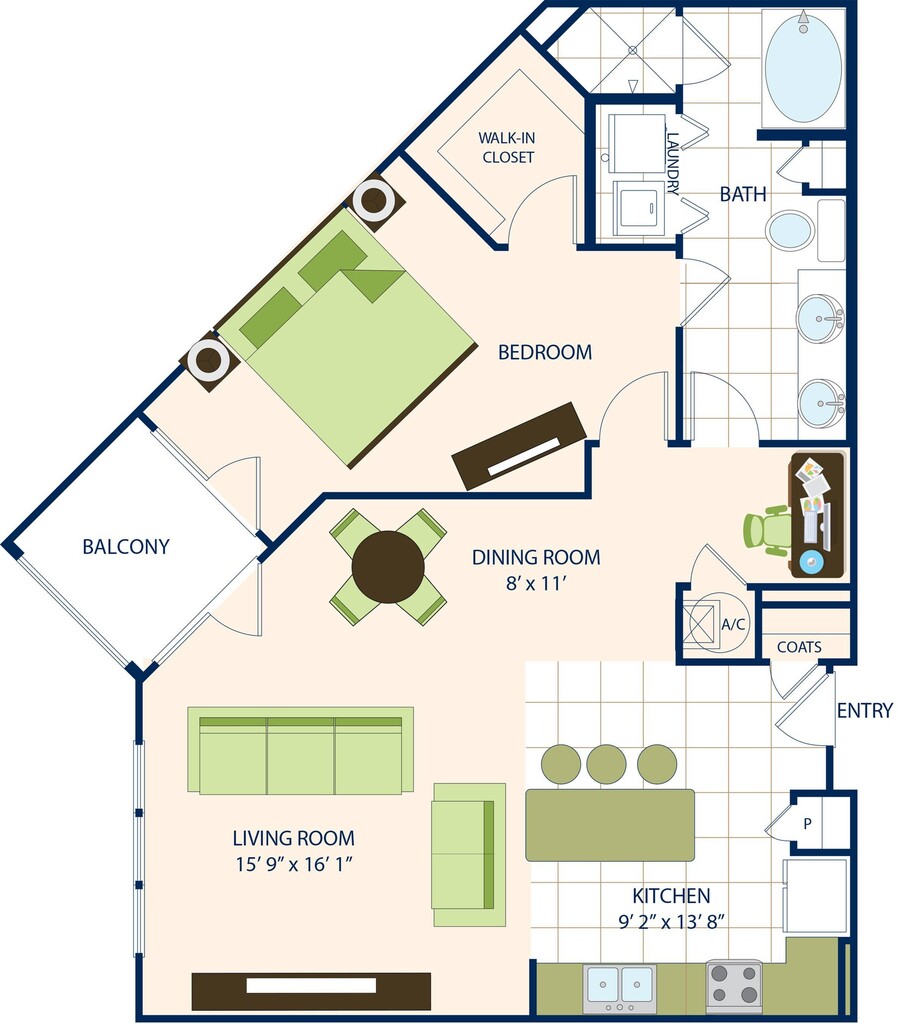 One Bedroom One Bath (811 SF)