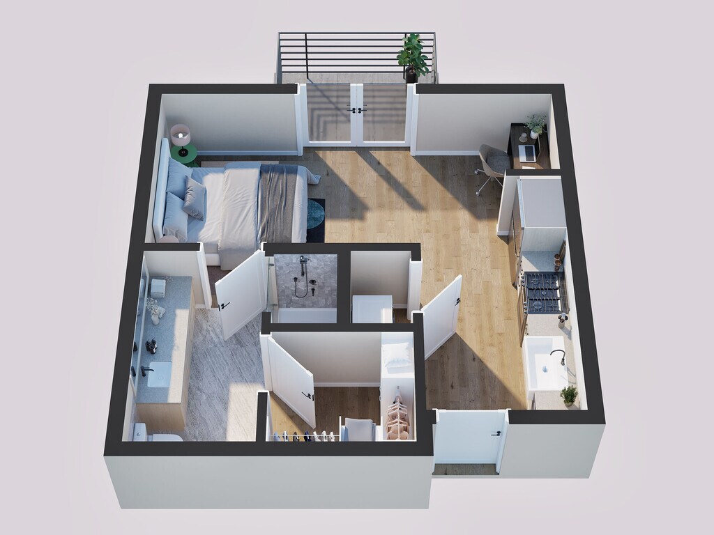 1 Bed, 1 Bath, 617 sq ftAvailable NowModel Gallery