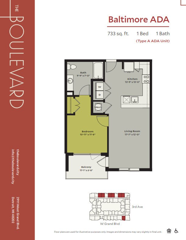 Baltimore ADA - Floorplan 1 Apartment Unit: 6105Apartment Model: Baltimore ADA$1,6751 Bedroom, 1 Bath, 733 sq ftAvailable NowLothrop