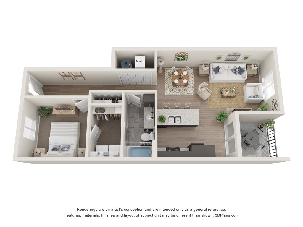 1 Bed, 1 Bath, 745 sq ftModel Gallery