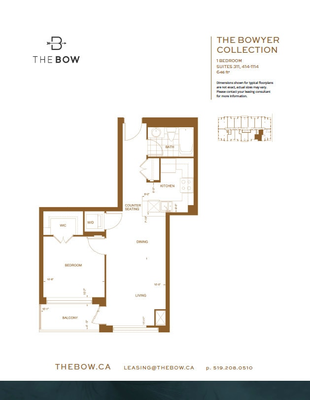 The Bowyer 14 - Floorplan 1 Apartment Unit: 914Apartment Model: The Bowyer 141 Bedroom, 1 Bath, 646 sq ftAvailable NowApartment Unit: 514Apartment Model: The Bowyer 141 Bedroom, 1 Bath, 646 sq ftAvailable NowThe Bowyer 02