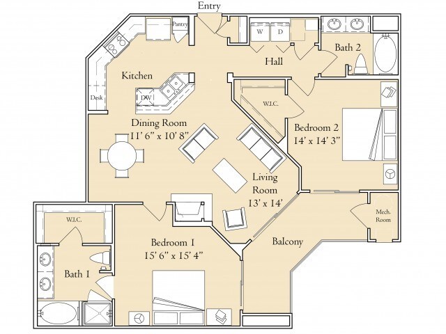2 Beds, 2 Baths, 1167 sq ftAvailable NowCheapest 2 BedroomThis is the cheapest 2 Bedroom at this PropertyModel Gallery