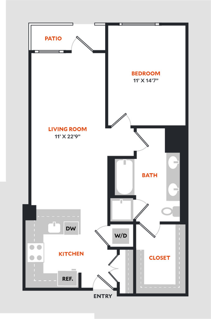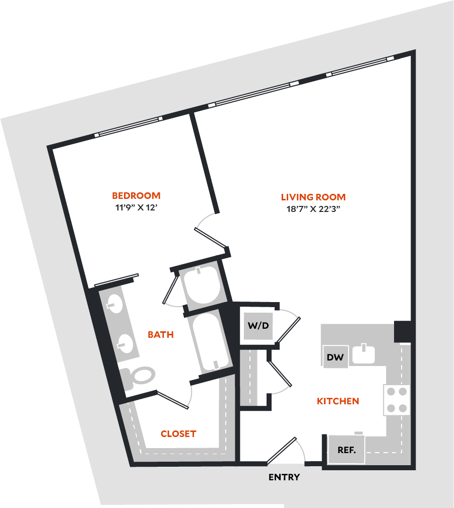 Studio, 1 Bath, 557 sq ftAvailable NowModel Gallery