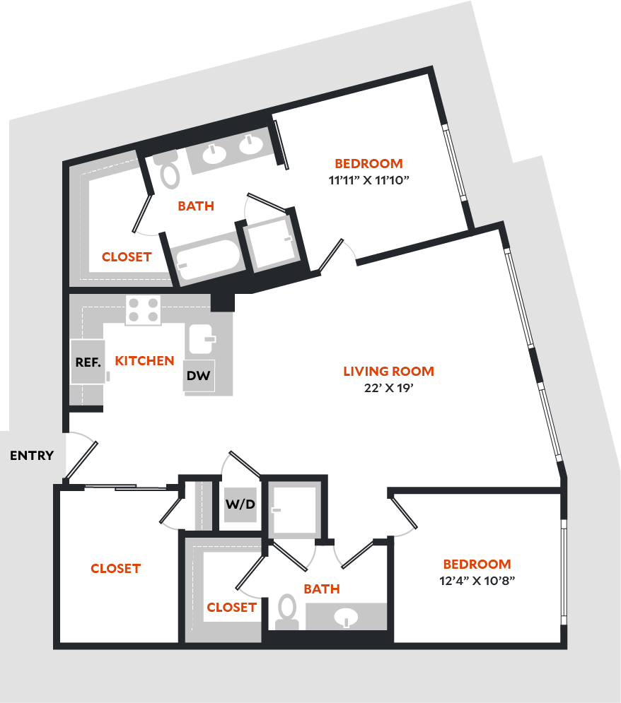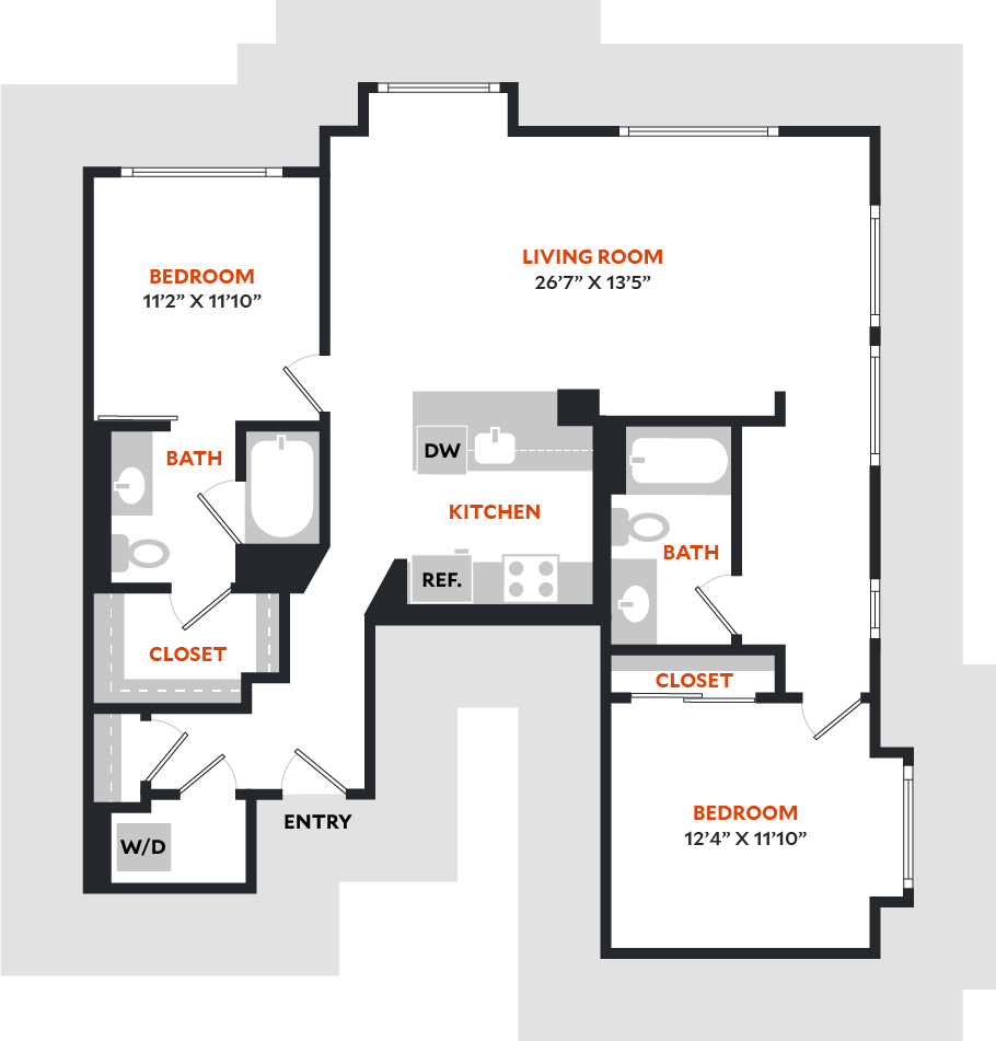 1 Bed, 1 Bath, 732 sq ftAvailable NowModel Gallery