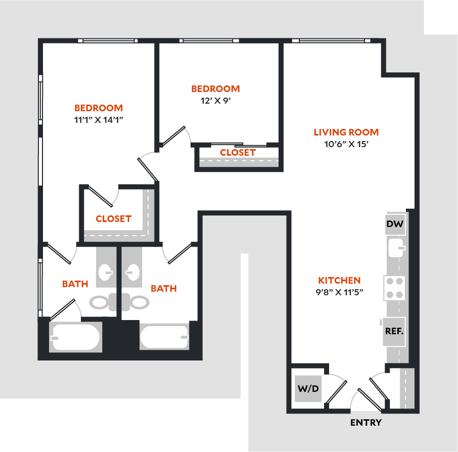 1 Bed, 1 Bath, 862 sq ftModel Gallery