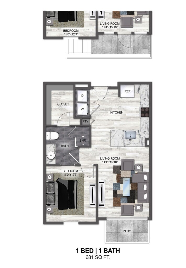 1 Bed, 1 Bath, 681 sq ftAvailable NowModel Gallery