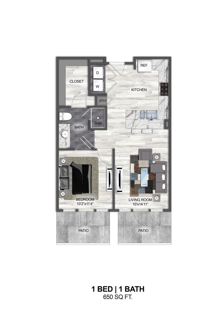 1 Bed, 1 Bath, 650 sq ftAvailable NowCheapest 1 BedroomThis is the cheapest 1 Bedroom at this PropertyModel Gallery