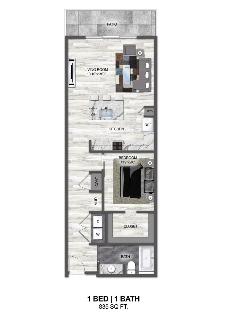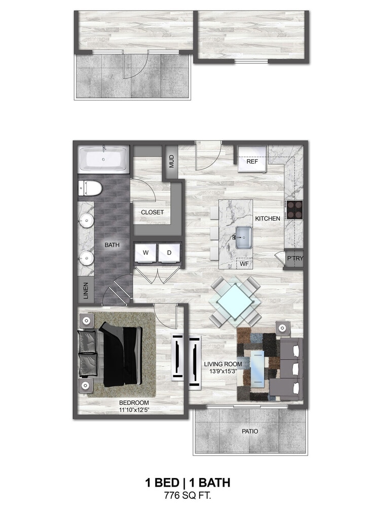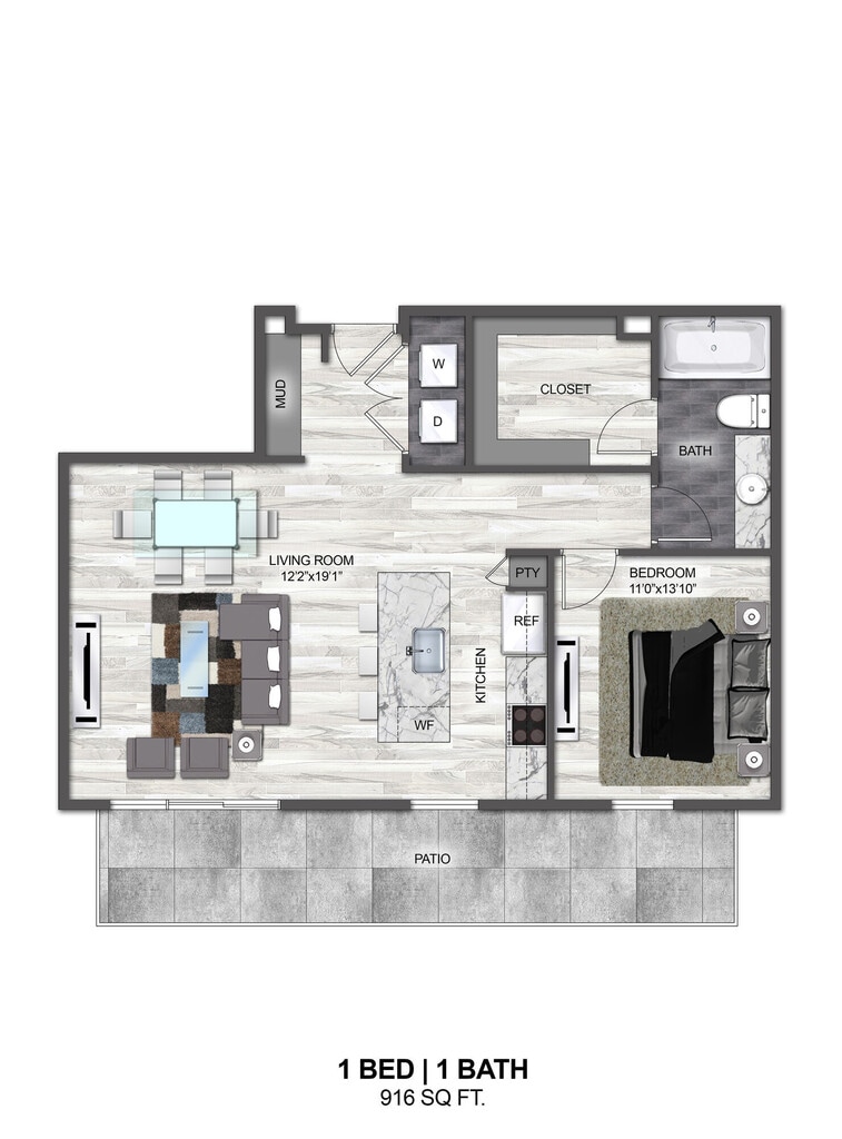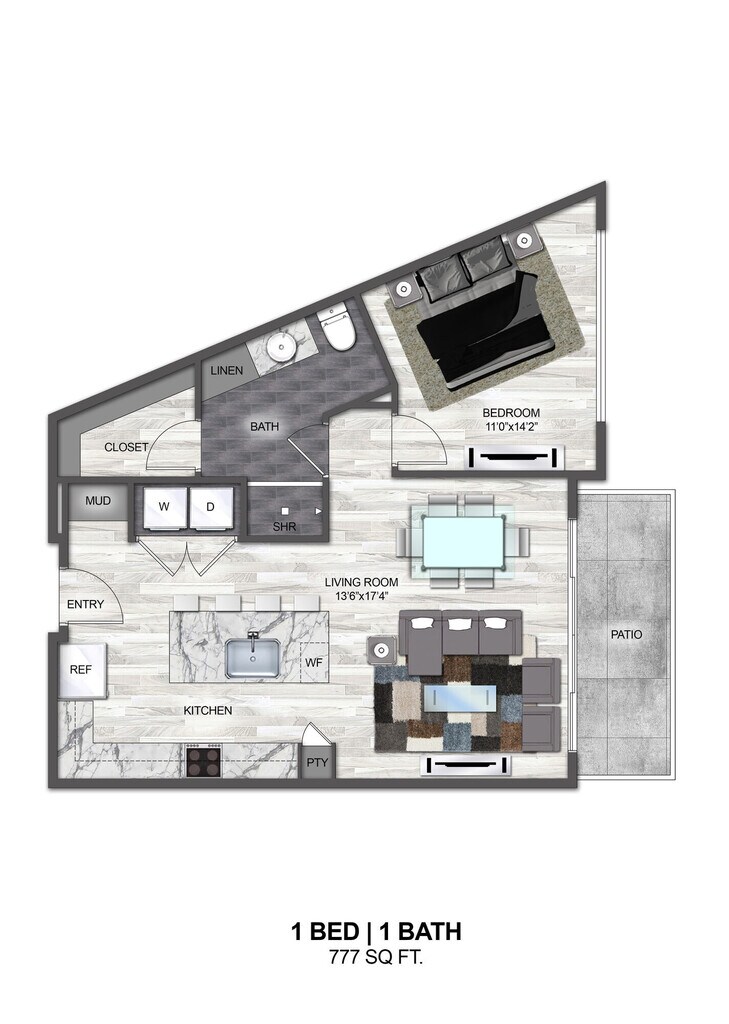 1 Bed, 1 Bath, 777 sq ftAvailable NowModel Gallery