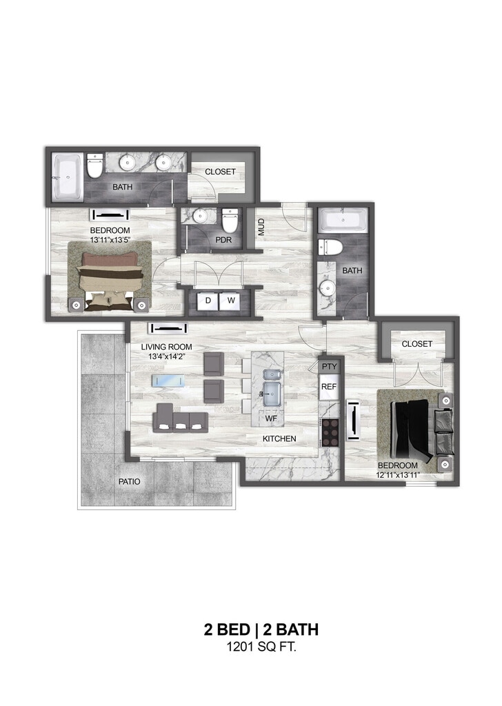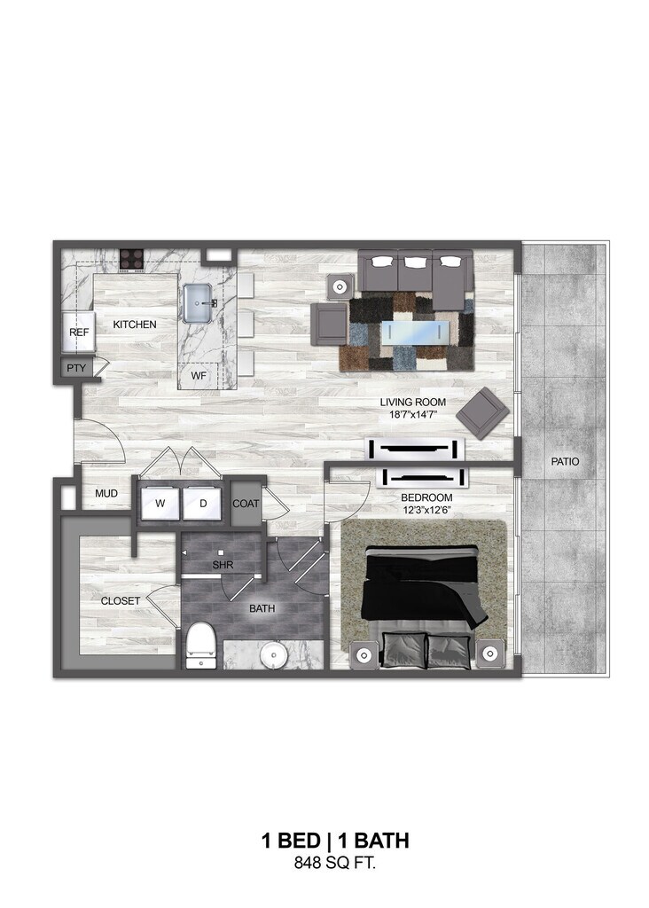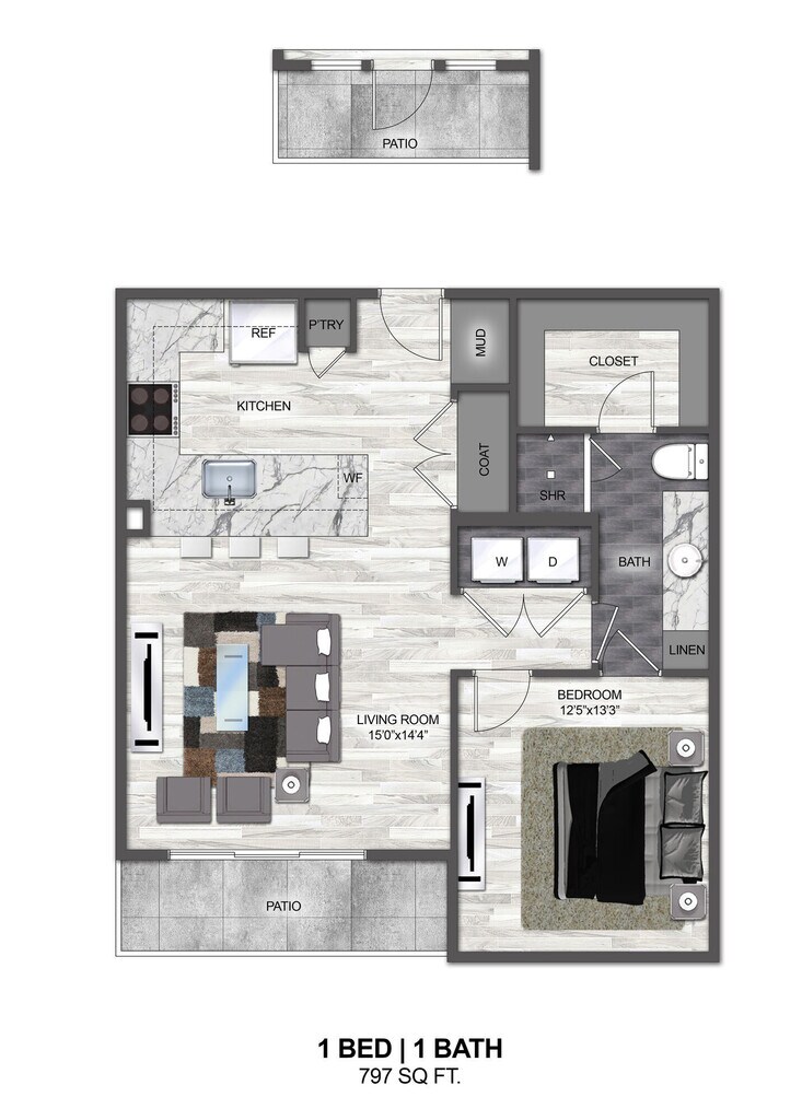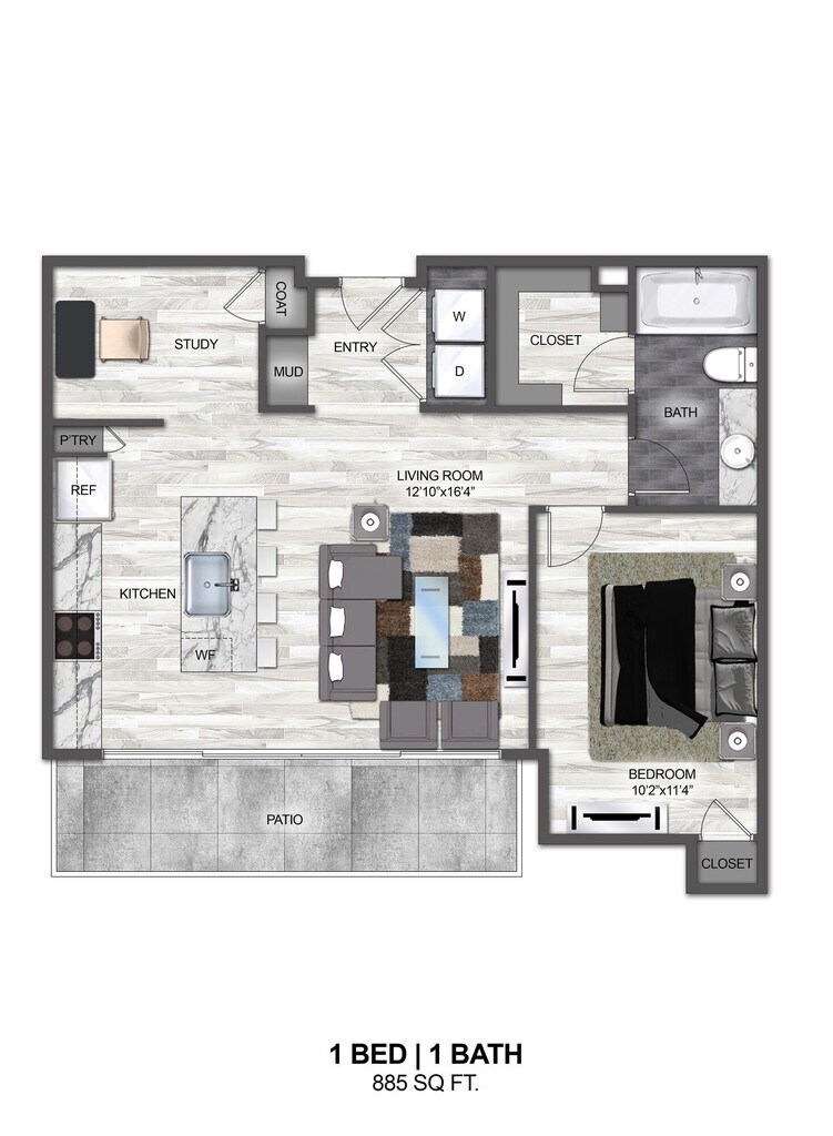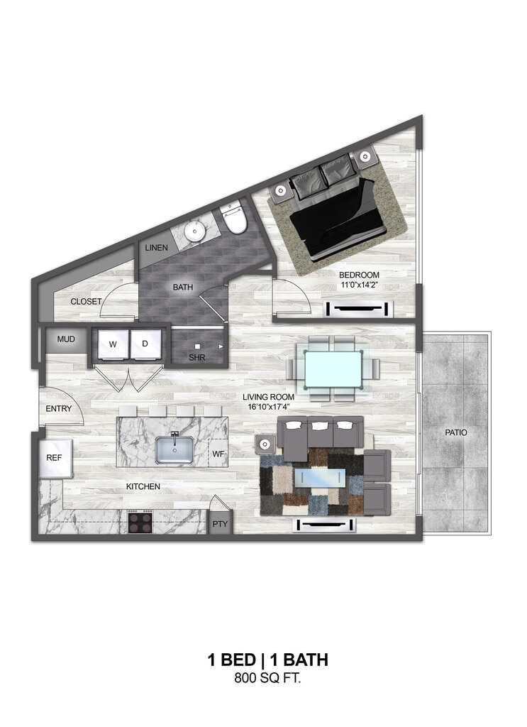 1 Bed, 1 Bath, 777 sq ftAvailable NowModel Gallery