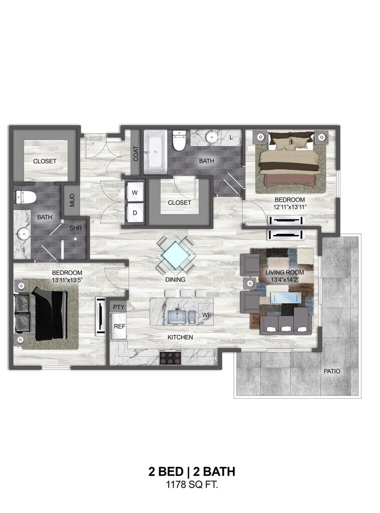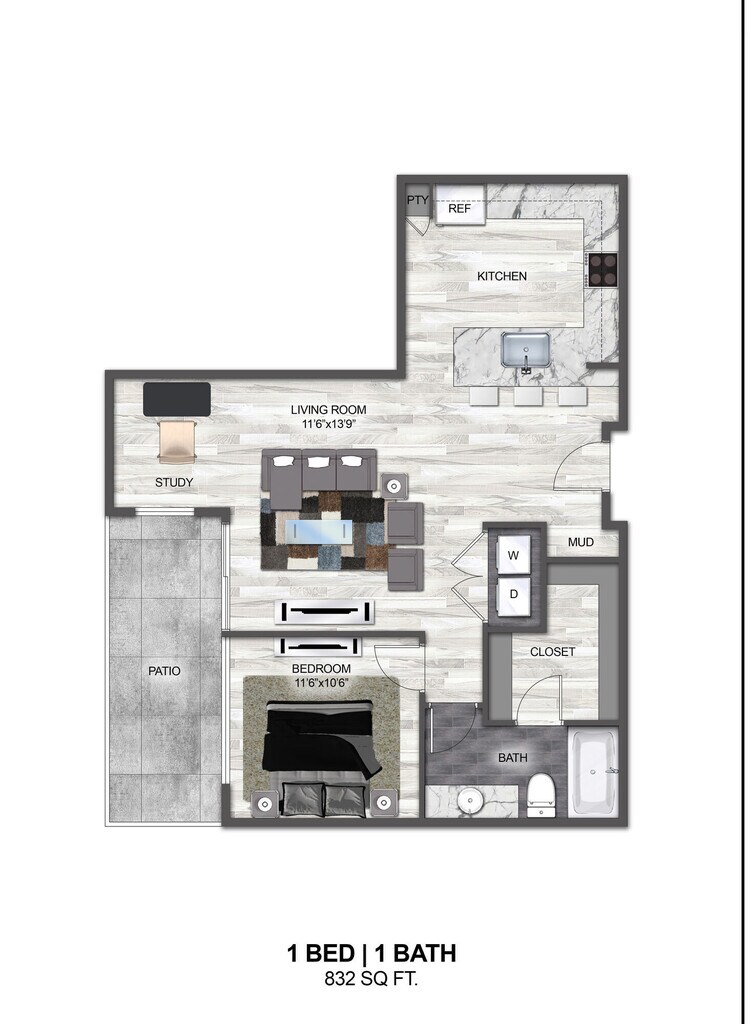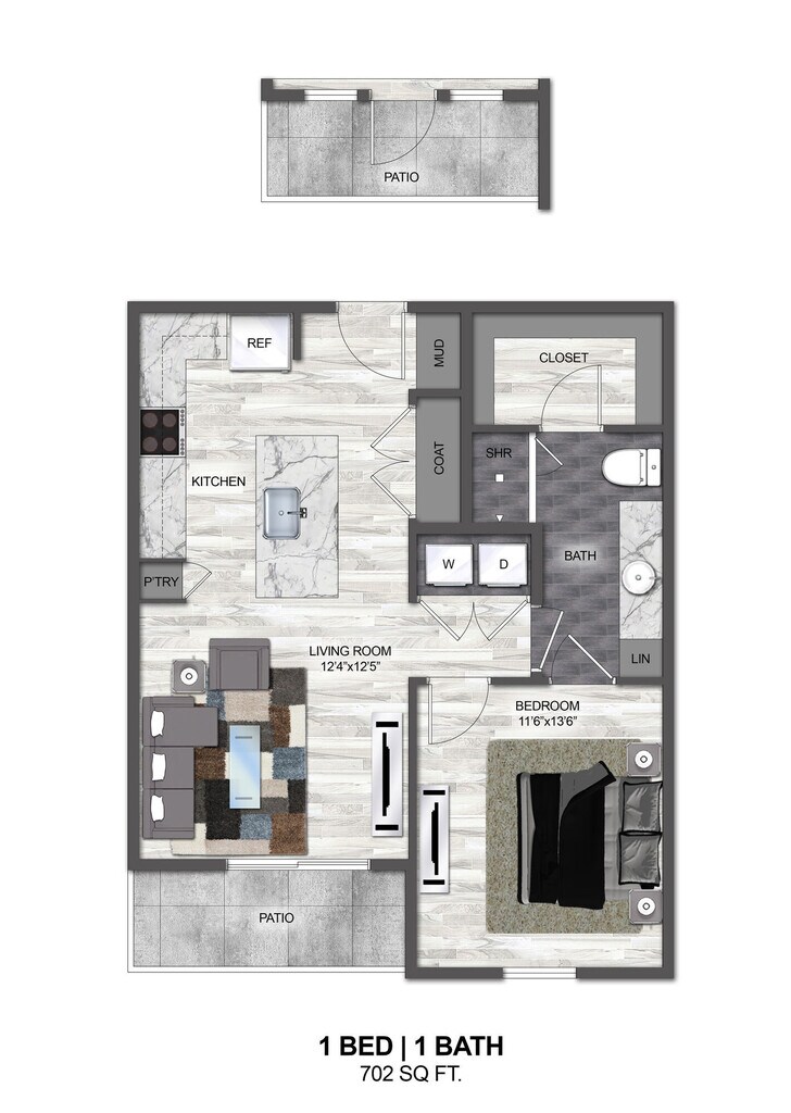 1 Bed, 1 Bath, 702 sq ftAvailable NowModel Gallery