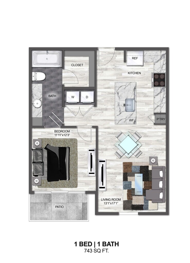 Apartment Model: A3From $1,9051 Bedroom, 1 Bath, 681 sq ftAvailable NowFloor plans are artist's rendering. All dimensions are approximate. Actual product and specifications may vary in dimension or detail. Not all features are available in every rental home. Please see a representative for details.