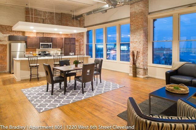 Located in the heart of Cleveland's historic Warehouse District, The Bradley’s eight floors comprise an eclectic mix of spacious residential suites designed with you in mind. The units uniquely feature city and lake views, granite tops, eco-friendly LED lighting, EnergyStar stacked, in-suite front loading washers / dryers, new lighting fixtures, remote control ceiling fans and more! See individual listings to learn more.