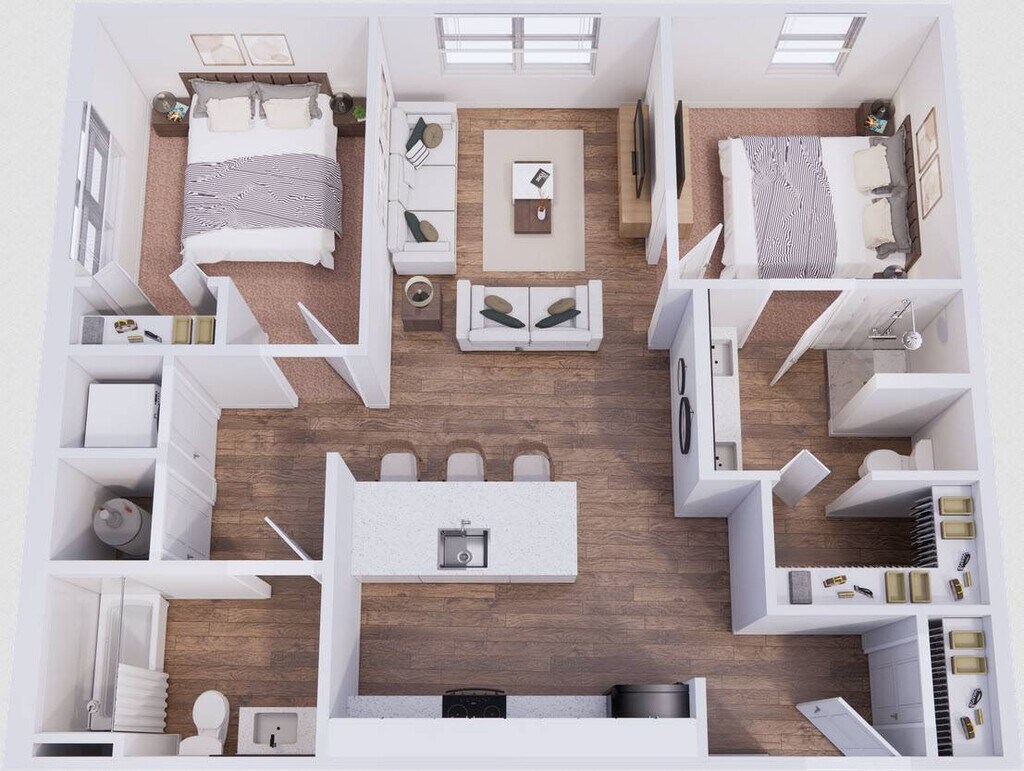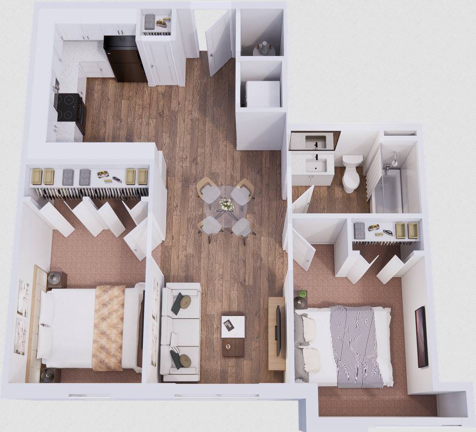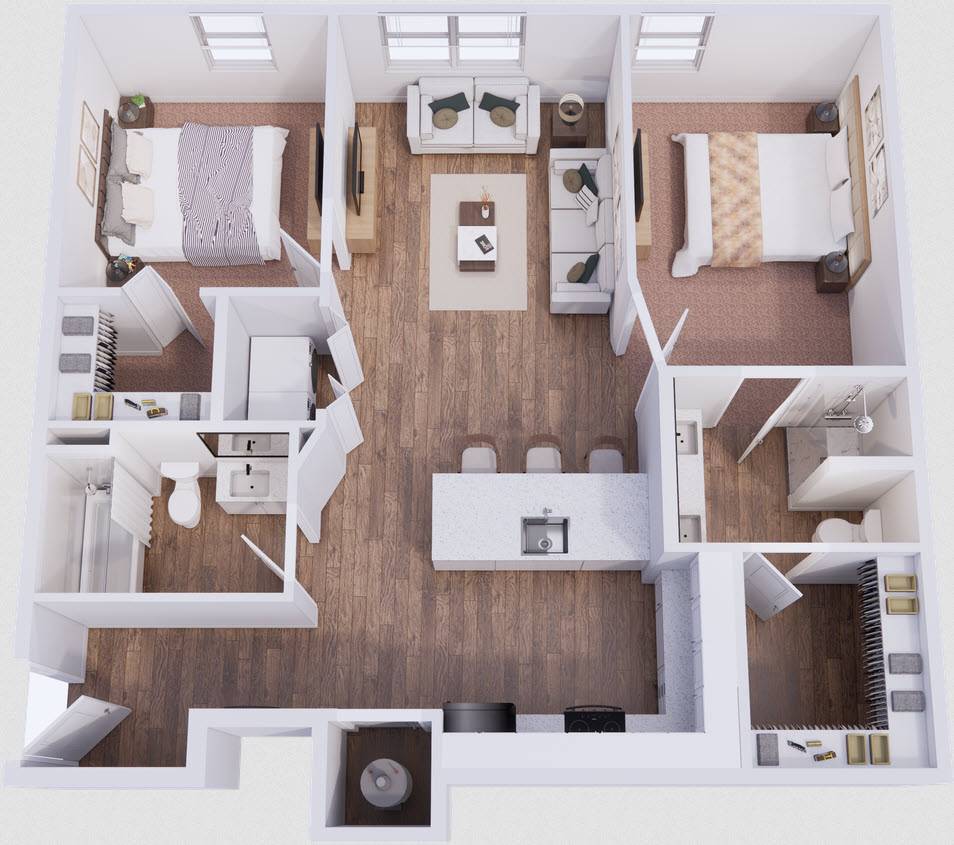 2 Beds, 2 Baths, 843 sq ftModel Gallery