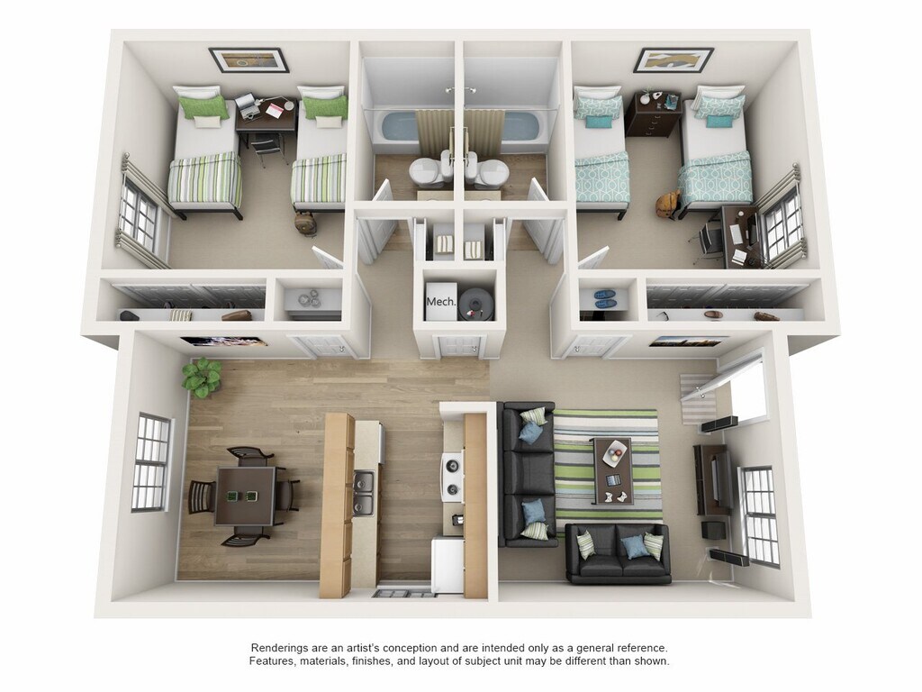 4 Beds, 2 Baths, 266 sq ftAvailable August 21, 2026Model Gallery