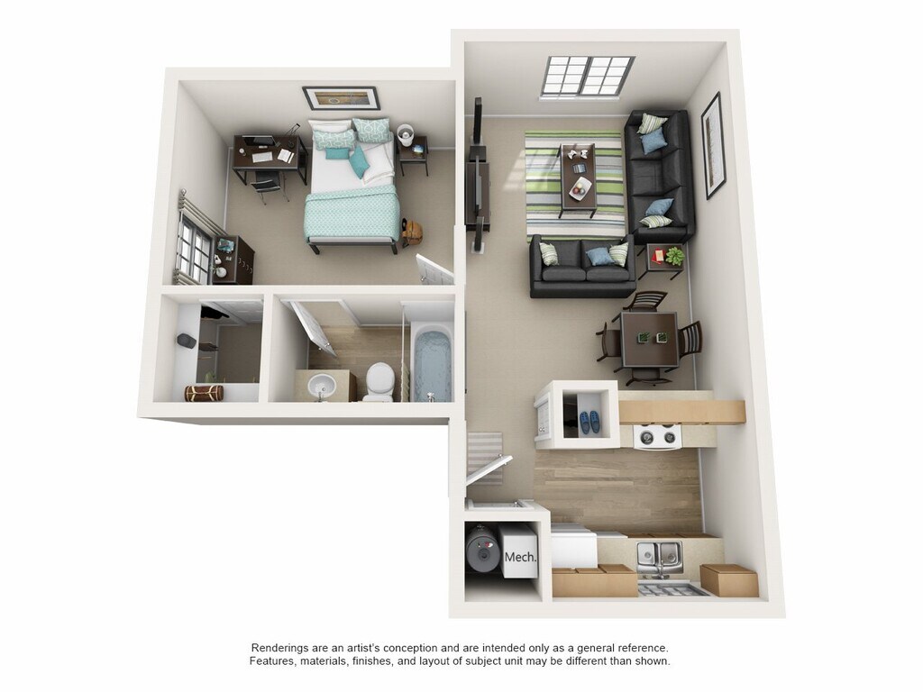 1 Bedroom Private - Floorplan 1 Apartment Unit: PrivateApartment Model: 1 Bedroom Private$1,1491 Bedroom, 1 Bath, 620 sq ftAvailable August 21, 20262 Bedrooms