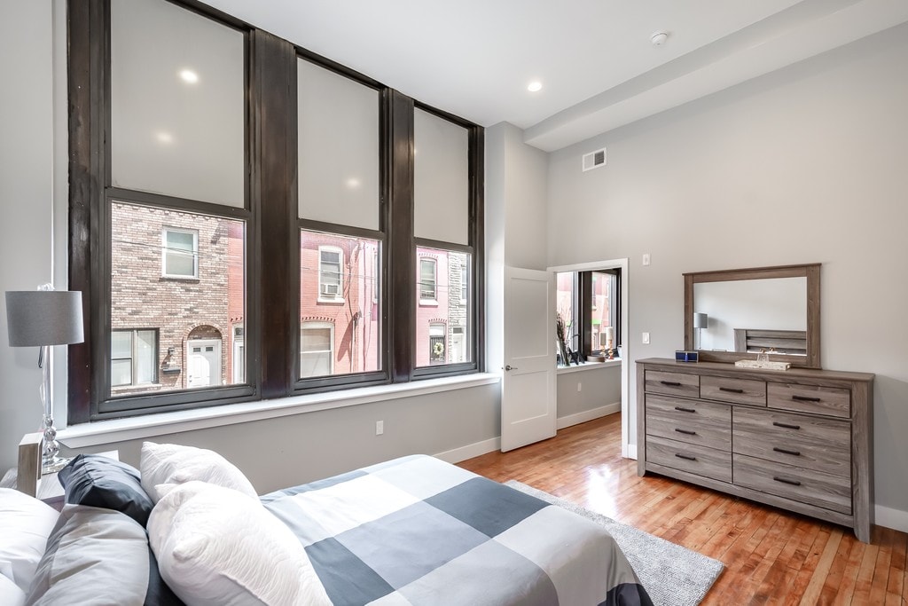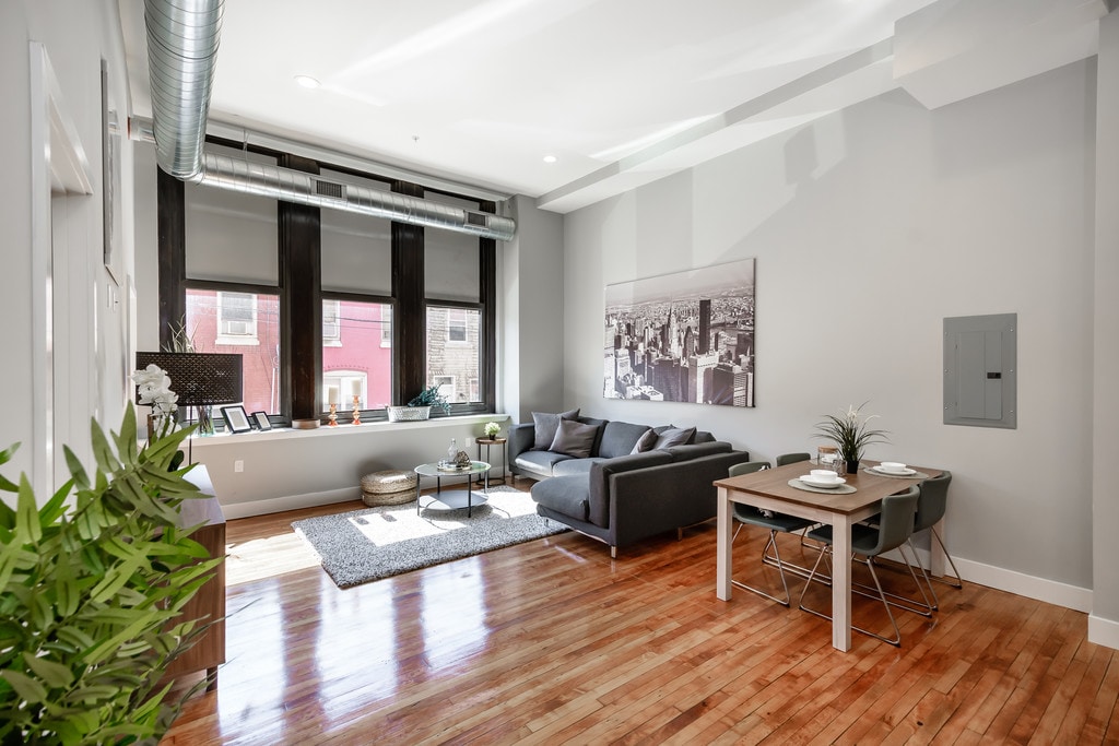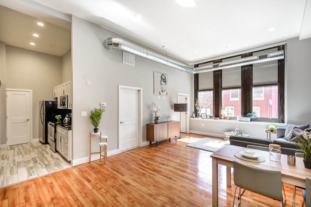 Our unique building is nestled in an old Philadelphia public school . Located in Point Breeze South Philly, the building is in a great location close to center city and surrounding areas such as Passyunk and Rittenhouse square. The rooms were designed to reflect a modern boutique look that brings together old Philadelphia architecture together with new modern influences. The high ceilings and tall windows promise an expansive vibe that is hard to find in the traditional South Philly row houses. The second and third floor sit well above the rest of the surrounding houses and buildings. Treat yourself with this unique opportunity and live above the accepted standards of living. Join the movement to bring luxury living to new heights. -The Breeze Building at Newbold Amenities: Roof Deck Stainless steel appliances granite countertops hardware floors exposed spiral duct works 12-16 foot ceilings recessed lighting future gym central air conditioning and heat pet friendly parking available laundry room on each level community room available