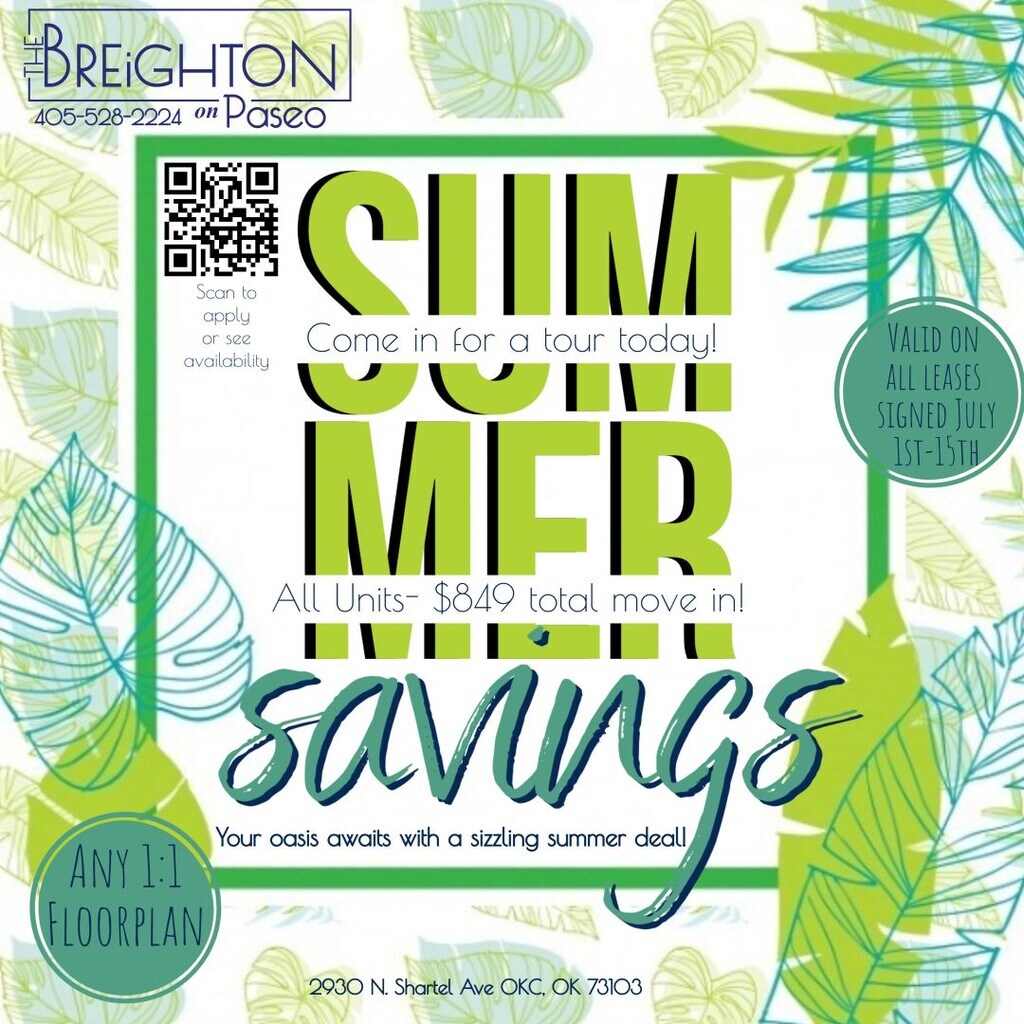 The Breighton on Paseo offers newly renovated 1 bedrooms in the heart of Oklahoma City's unique art destination. We offer various floor plans with vintage architecture, modern amenities, and conveniences. Enjoy your afternoon relaxing by the pool or skip the drive and walk - whether it's to admire the local art, enjoy local festivals, or to grab a bite at your favorite restaurant, or night spot. Pets? We welcome them with plenty of treats and yard space. Living at The Breighton means you're within walking distance of all that The Paseo district has to offer.